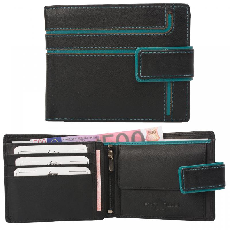 Dariya Portemonnee 2902-blacktuerkis Zwart Turquoise Leer