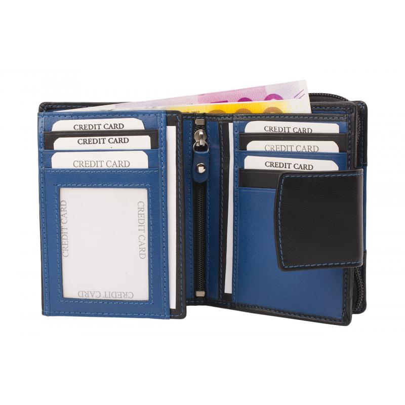 Dariya Portemonnee 3002 Zwart Blauw Leer