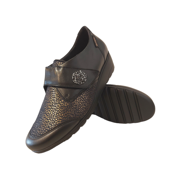 De Mephisto Mobils Bandschoen Branda Zwart is een mooie bandschoen met een uitstekende pasvorm voor dames. Het bovenwerk is prachtig zwart suède leer met op de voorvoet een stretch stukje, waardoor de schoen iets breder valt. De band over de wreef is verstelbaar met klittenband. De schoen heeft een hak verhoging van 4 cm. Er zit een zeer goed voetbed in, die ook uitneembaar is om er eventuele steunzolen in te kunnen dragen. De rubberen, slijtvaste en flexibele zool draagt bij aan een optimaal loopcomfort.