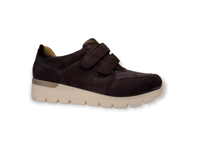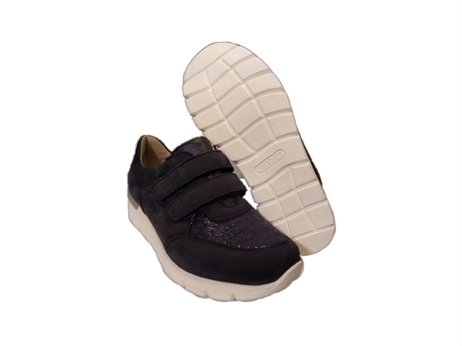 De Waldlaufer Orthotritt Klittenbandschoen 626K31 500 845 Marine Blauw Stretch Wijdte K is een zeer comfortabele Klittenbandschoen/Sneaker met een uitstekende pasvorm. Het bovenwerk is prachtig blauw nubuck, gecombineerd met stretch materiaal in een subtiele kroko print. De schoen is leer en stretch gevoerd en heeft een goed voetbed. Het voetbed is een uitneembaar voetbed zodat er eigen steunzolen in gedragen kunnen worden. De sneaker is te verstellen met twee banden die gemakkelijk zijn aan te passen aan de voet door middel van klittenband. De schoen is gemaakt op wijdte K, voor een brede voet. De zool is lichtgewicht en slijtvast en draagt zo bij aan een geweldig loopcomfort!
