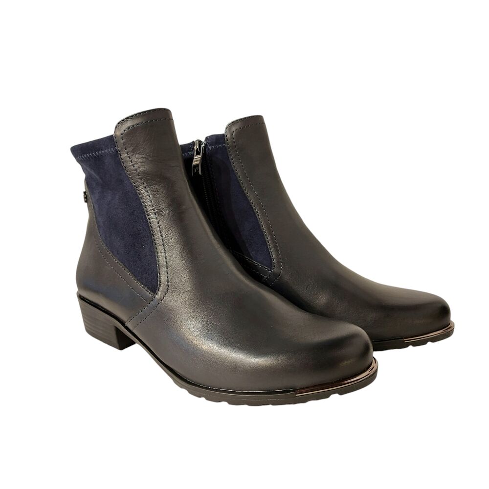 De Caprice Korte Laars 9-25307-43 880 Ocean Blauw is een mooie korte laars met een goede pasvorm. Het bovenwerk is mooi donkerblauw leer. Textiel gevoerd en gemaakt op wijdte G. Het laarsje heeft een goed en comfortabel voetbed. Dit voetbed is ook uitneembaar, hierdoor kunnen er steunzolen in gedragen worden. Met een mooie draagbare hak en de rubberen zool is flexibel en slijtvast en draagt bij aan een fijn loopcomfort.