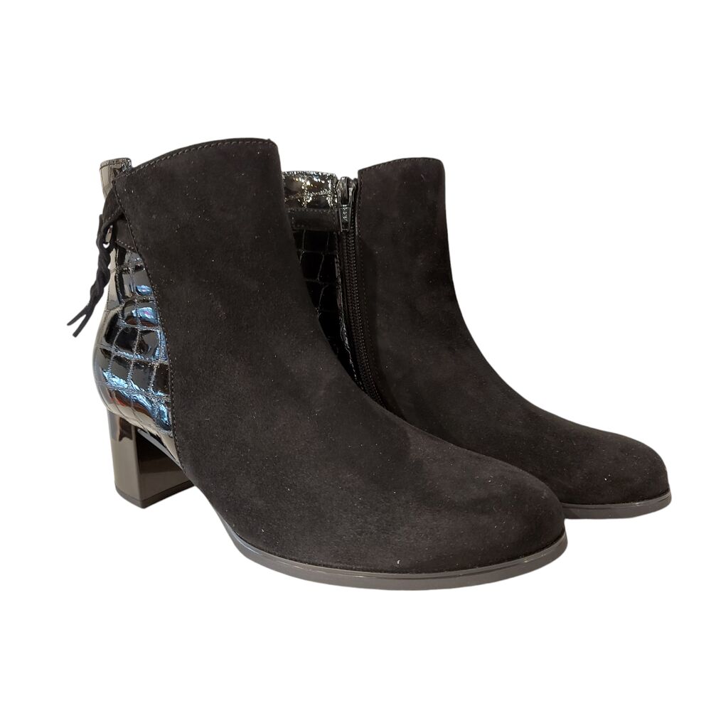 De Gabor Korte Laars 55.692.90 Zwart is een prachtig, klassiek laarsje met een goede pasvorm. Het bovenwerk is gemaakt van zwart suede leer. Verder is de laars met textiel gevoerd. Ook heeft de laars een goed en comfortabel voetbed, die eventueel ook uitneembaar is zodat er eigen steunzolen in kunnen worden gedragen. Met een makkelijke instap door middel van één rits. Bovendien is de loopzool licht van gewicht en slijtvast, met een hakhoogte van 5 cm. Zo draagt het bij aan een fijn loopcomfort.