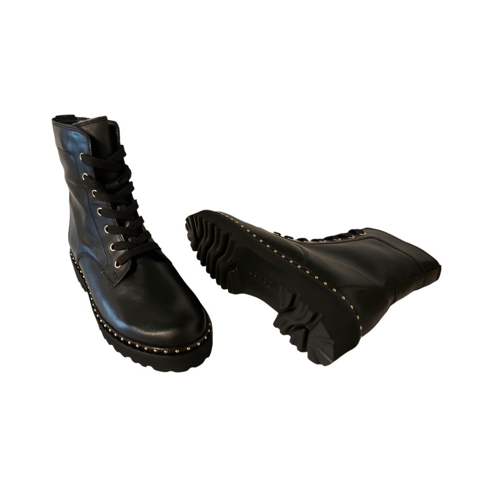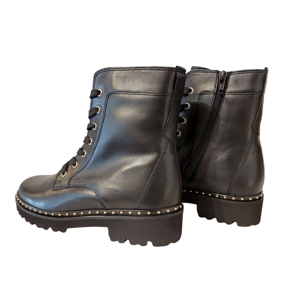 De Gabor Veterboot 51.751.20 Zwart is een prachtige stoere veterboot met een goede pasvorm. Het bovenwerk is mooi zwart gladleer. Verder heeft de laars een zachte, textiele voering, wat heerlijk voelt aan de voet. De veterboot heeft een goed en comfortabel voetbed, die eventueel uitneembaar is om er eigen steunzolen in te kunnen dragen. Naast de vetersluiting heeft de laars ook een rits voor een makkelijke instap en een goede pasvorm. De loopzool is licht van gewicht en slijtvast. Zo draagt het bij aan een fijn loopcomfort. Met een hakhoogte van 2 cm. Kortom, een stijlvolle, comfortabele veterboot!