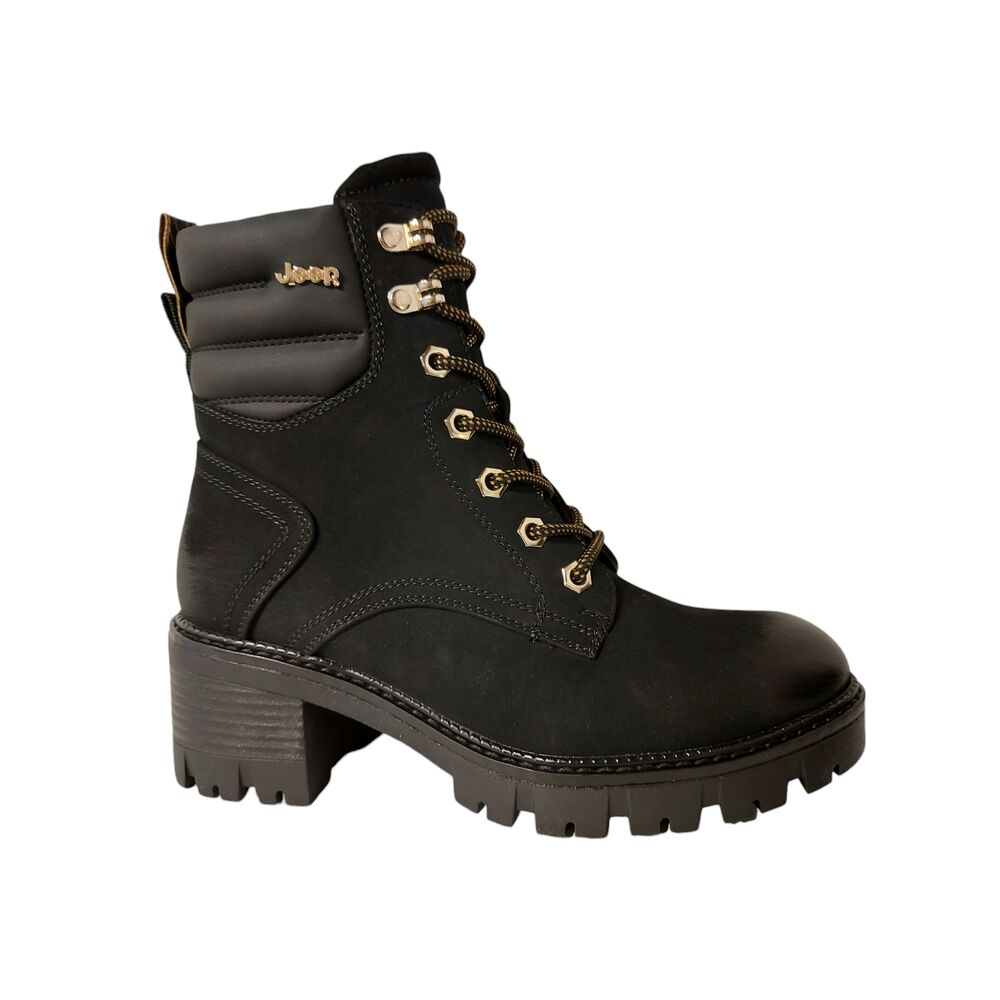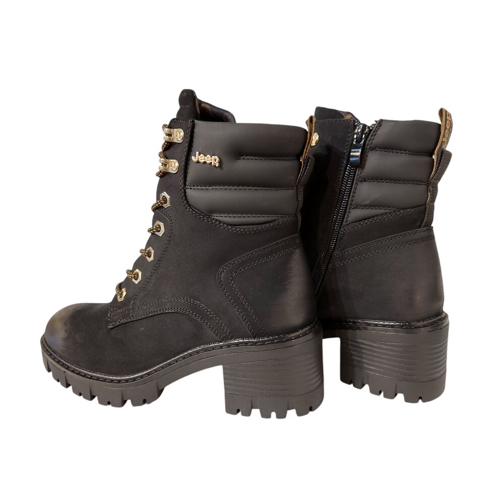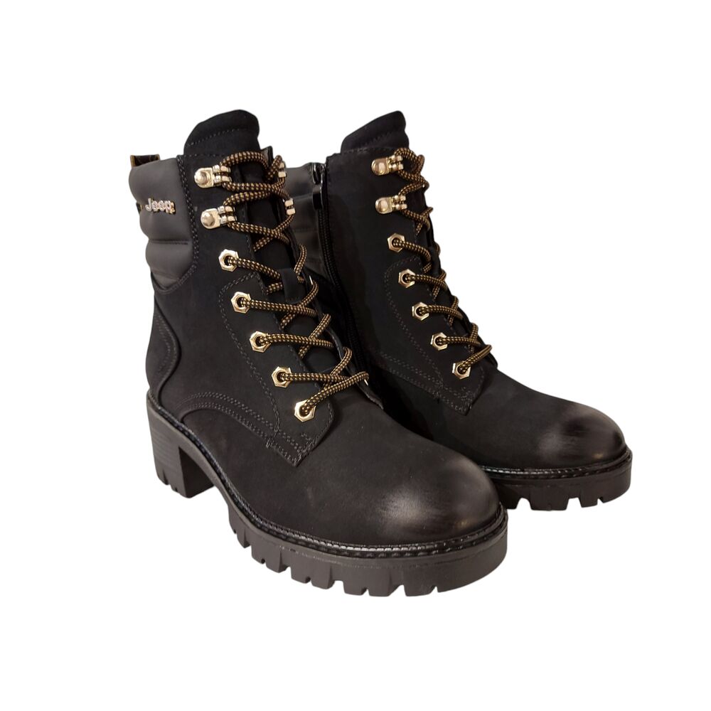 Deze Jeep Veterboot Raven Lace NBK JL42600A 062 Zwart is een leuke sportieve veterboot voor dames van het bekende merk 'Jeep'. De bovenkant van de boot is gemaakt van imitatienubuckleer in een diep zwarte kleur, met een opgeschuurde neus. Verder is de binnenkant is van een combinatie imitatieleer en textiel. Met een fijne pasvorm doordat de boot zowel veters, als een rits heeft. Met een stabiele en slijtvaste loopzool met een fijne hakhoogte van 4 cm. Kortom een hele fijne en comfortabele veterboot!