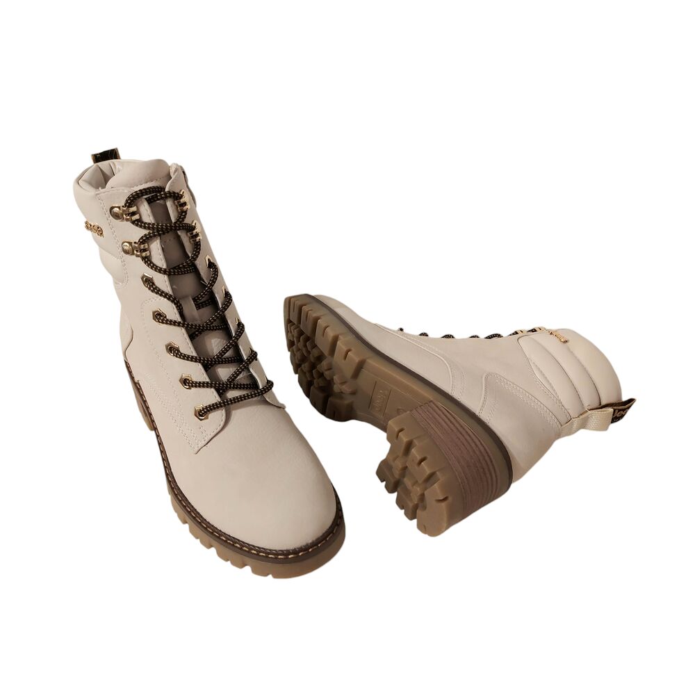 Deze Jeep Veterboot Raven Lace NBK JL42600A 091 Ice is een leuke sportieve veterboot voor dames van het bekende merk 'Jeep'. De bovenkant van de boot is gemaakt van imitatienubuckleer in een lichte, hippe kleur. Verder bestaat de binnenkant uit een combinatie van imitatieleer en textiel. Met een fijne pasvorm doordat de boot zowel veters, als een rits heeft. Met een stabiele en slijtvaste loopzool met een fijne hakhoogte van 4 cm. Kortom, een hele fijne en comfortabele veterboot!