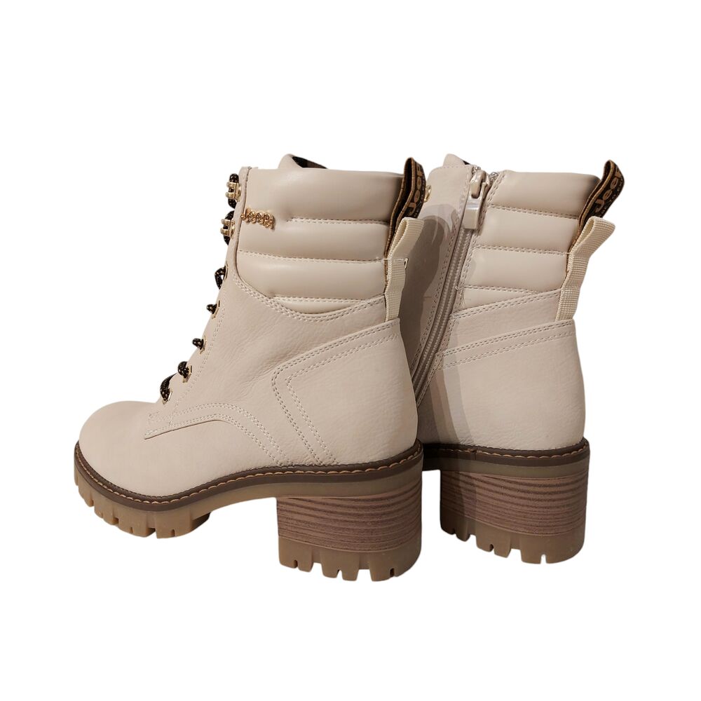 Deze Jeep Veterboot Raven Lace NBK JL42600A 091 Ice is een leuke sportieve veterboot voor dames van het bekende merk 'Jeep'. De bovenkant van de boot is gemaakt van imitatienubuckleer in een lichte, hippe kleur. Verder bestaat de binnenkant uit een combinatie van imitatieleer en textiel. Met een fijne pasvorm doordat de boot zowel veters, als een rits heeft. Met een stabiele en slijtvaste loopzool met een fijne hakhoogte van 4 cm. Kortom, een hele fijne en comfortabele veterboot!