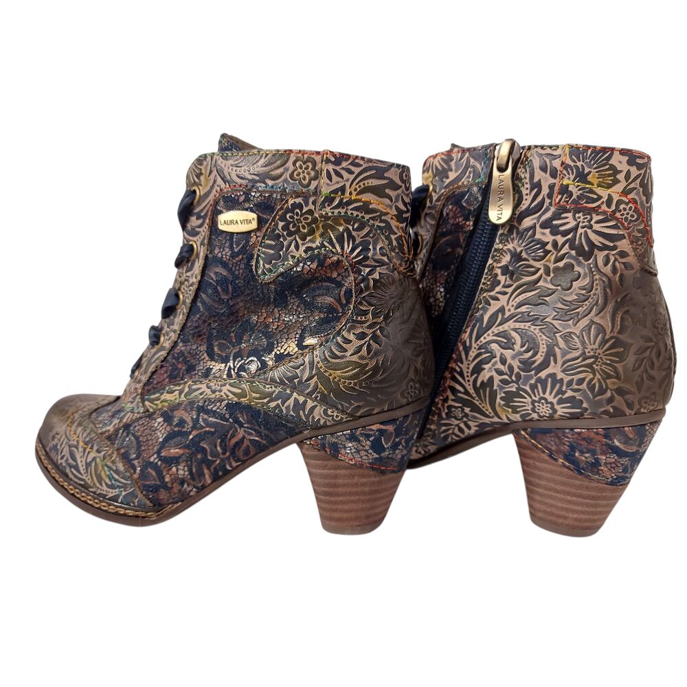 Laura Vita is opgericht in 2004 in het noorden van Frankrijk. Een merk met een eigen identiteit en originaliteit. Geïnspireerd door de natuur, de kunst maar ook de nieuwste trends. Prachtige kleuren, mooie leersoorten en bijzondere details. Omdat de schoen in eerste plaats een object is om de voet te beschermen, wordt er veel werk besteed aan het comfort van de modellen. Draagbare hakhoogtes en ergonomische zolen. Laura Vita geeft uiting aan zijn wens om alle vrouwen een vleugje waanzin in hun dagelijkse outfits te bieden.