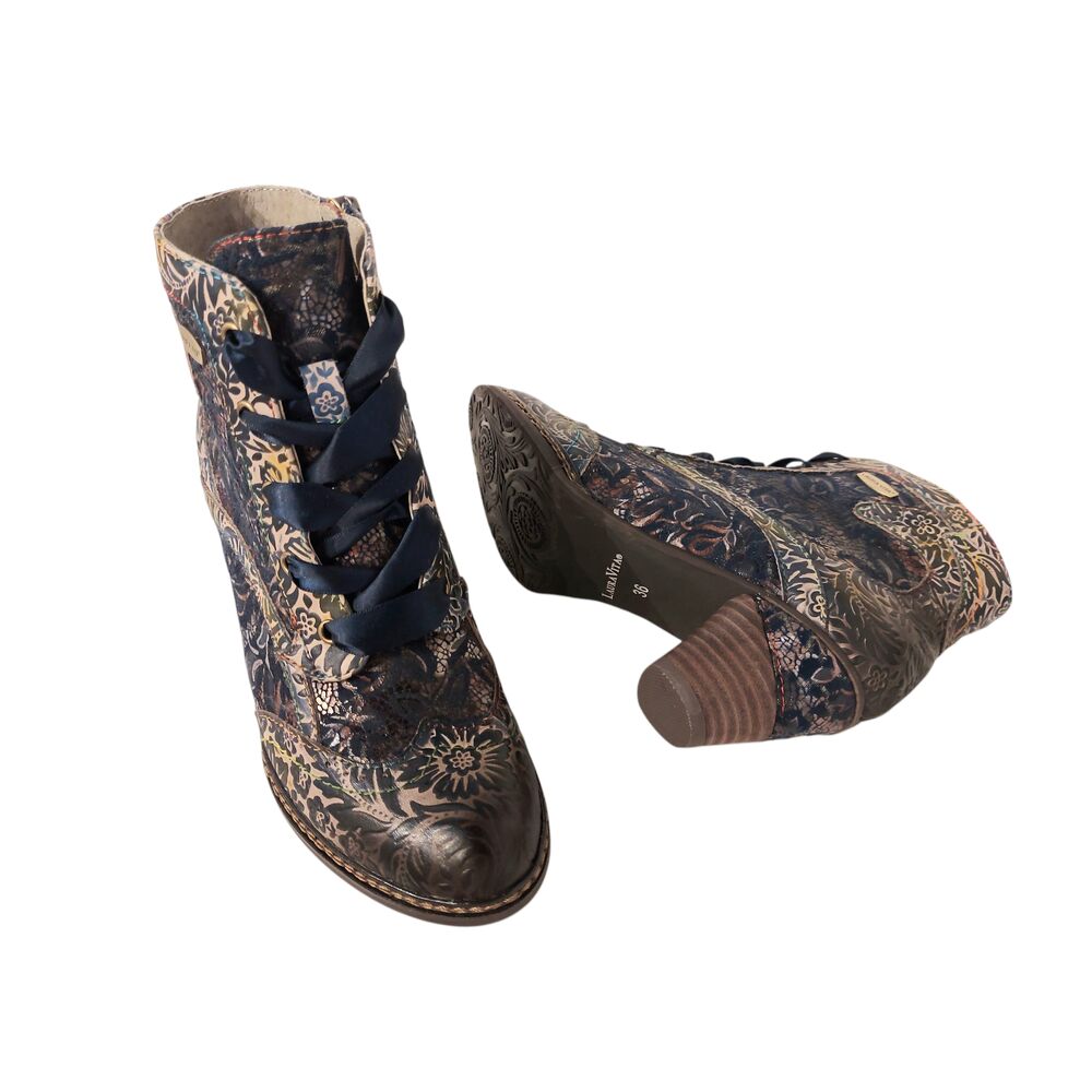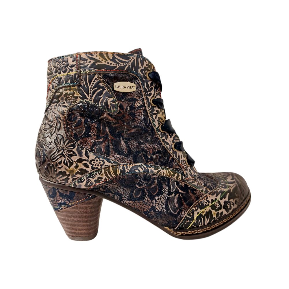 Laura Vita is opgericht in 2004 in het noorden van Frankrijk. Een merk met een eigen identiteit en originaliteit. Geïnspireerd door de natuur, de kunst maar ook de nieuwste trends. Prachtige kleuren, mooie leersoorten en bijzondere details. Omdat de schoen in eerste plaats een object is om de voet te beschermen, wordt er veel werk besteed aan het comfort van de modellen. Draagbare hakhoogtes en ergonomische zolen. Laura Vita geeft uiting aan zijn wens om alle vrouwen een vleugje waanzin in hun dagelijkse outfits te bieden.