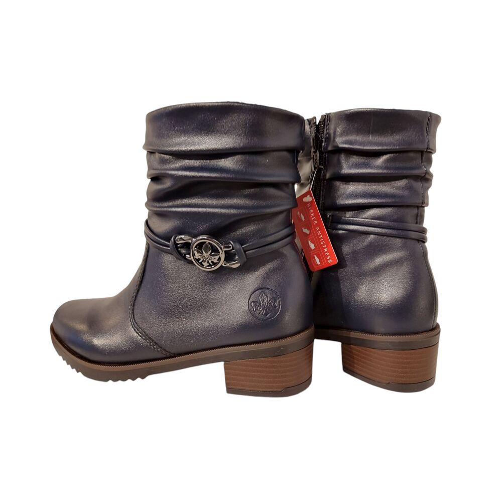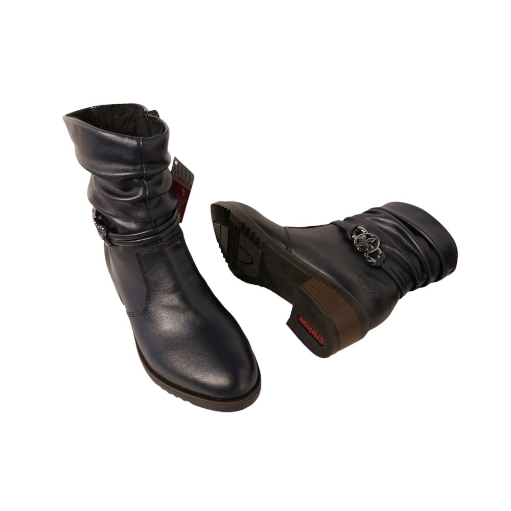 De Rieker Korte Laars Y0572-14 Blauw Warm Gevoerd is een comfortabele laars van Rieker die jou op stijlvolle wijze de koude maanden door helpt! De buitenkant van de laars is gemaakt van mooi donkerblauw gladleer. Daarnaast is de binnenkant heerlijk gevoerd met een heerlijke zachte voering, gemaakt van textiel. Verder heeft de laars een mooie hak van 3 cm voor een stijlvolle uitstraling. Bovendien voelt deze laars heerlijk licht aan de voet. Ook heeft de laars een zacht voetbed. Kortom, loopcomfort gegarandeerd!