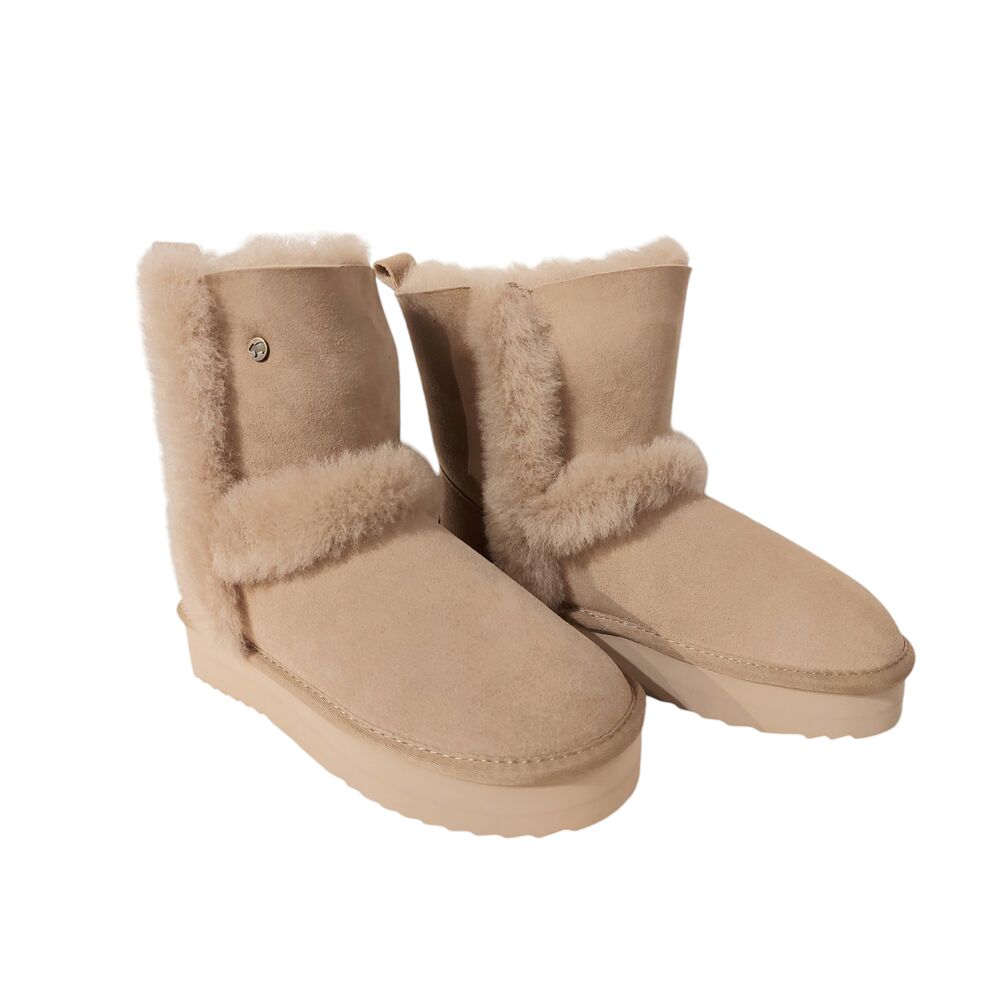 De Warmbat Korte Laars Kangaroo Plateau KNG 376151 Stone is een heerlijk warme korte laars voor dames. Het bovenwerk is suède en de voering is 100% Merino schapenvacht. Heerlijk zacht en voelt heerlijk aan, aan de voet! De laars, die uiteraard ook als pantoffel gedragen kan worden, heeft een natuurlijke temperatuur regulering, warm in de winter en koel in de zomer. De zool is lichtgewicht en slijtvast. Een duurzame laars van zeer hoge kwaliteit met uitstekend comfort! Natuurlijk kan je er ook gewoon mee buiten lopen!