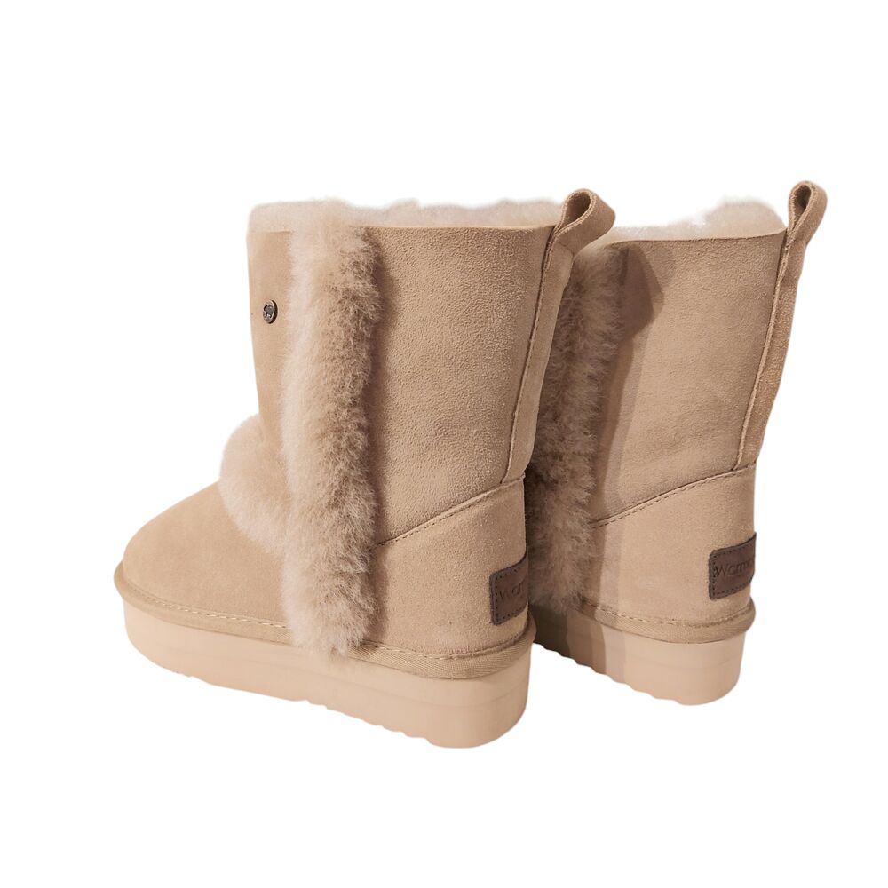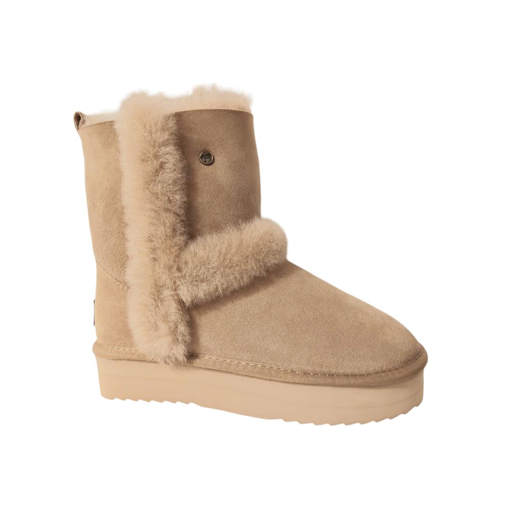 De Warmbat Korte Laars Kangaroo Plateau KNG 376151 Stone is een heerlijk warme korte laars voor dames. Het bovenwerk is suède en de voering is 100% Merino schapenvacht. Heerlijk zacht en voelt heerlijk aan, aan de voet! De laars, die uiteraard ook als pantoffel gedragen kan worden, heeft een natuurlijke temperatuur regulering, warm in de winter en koel in de zomer. De zool is lichtgewicht en slijtvast. Een duurzame laars van zeer hoge kwaliteit met uitstekend comfort! Natuurlijk kan je er ook gewoon mee buiten lopen!