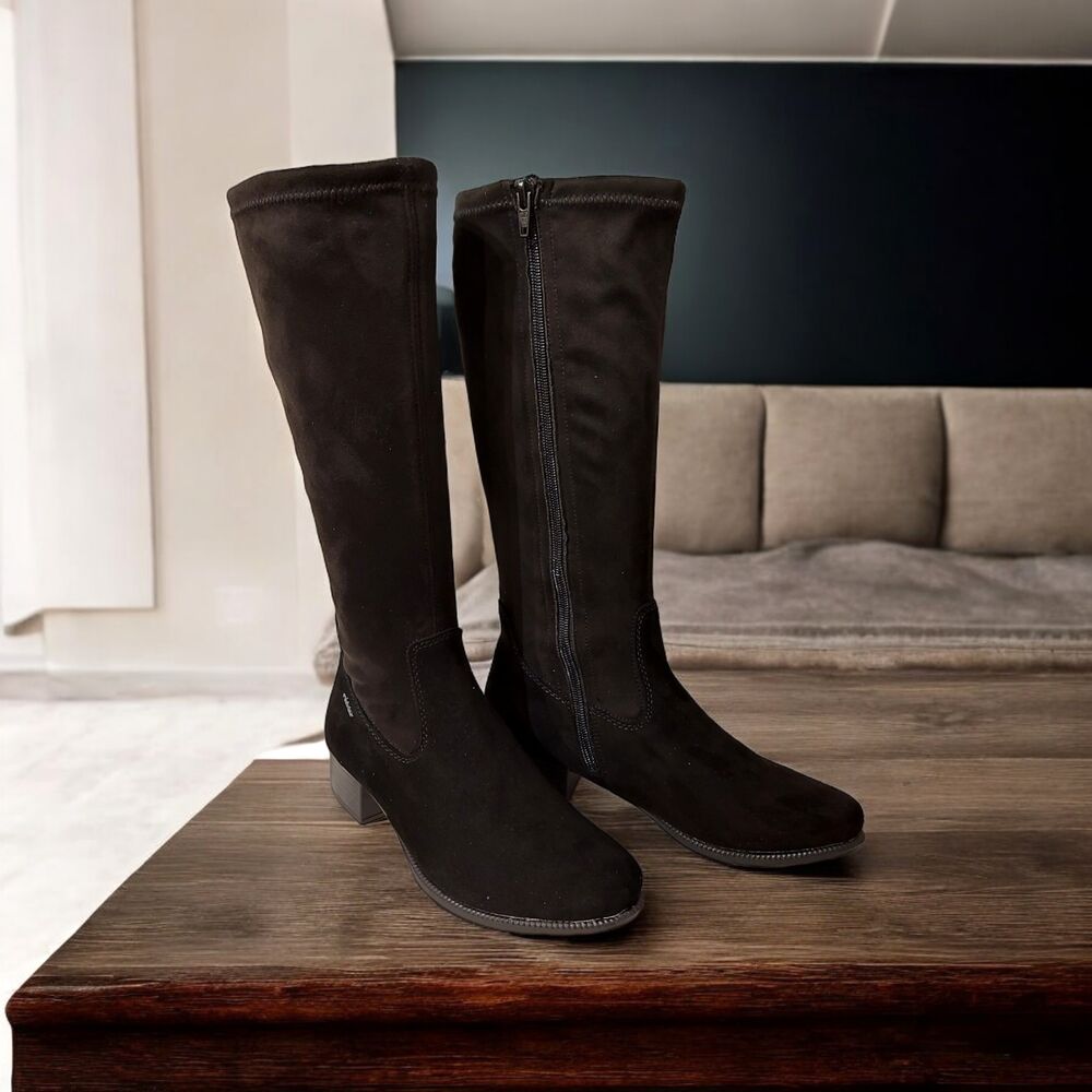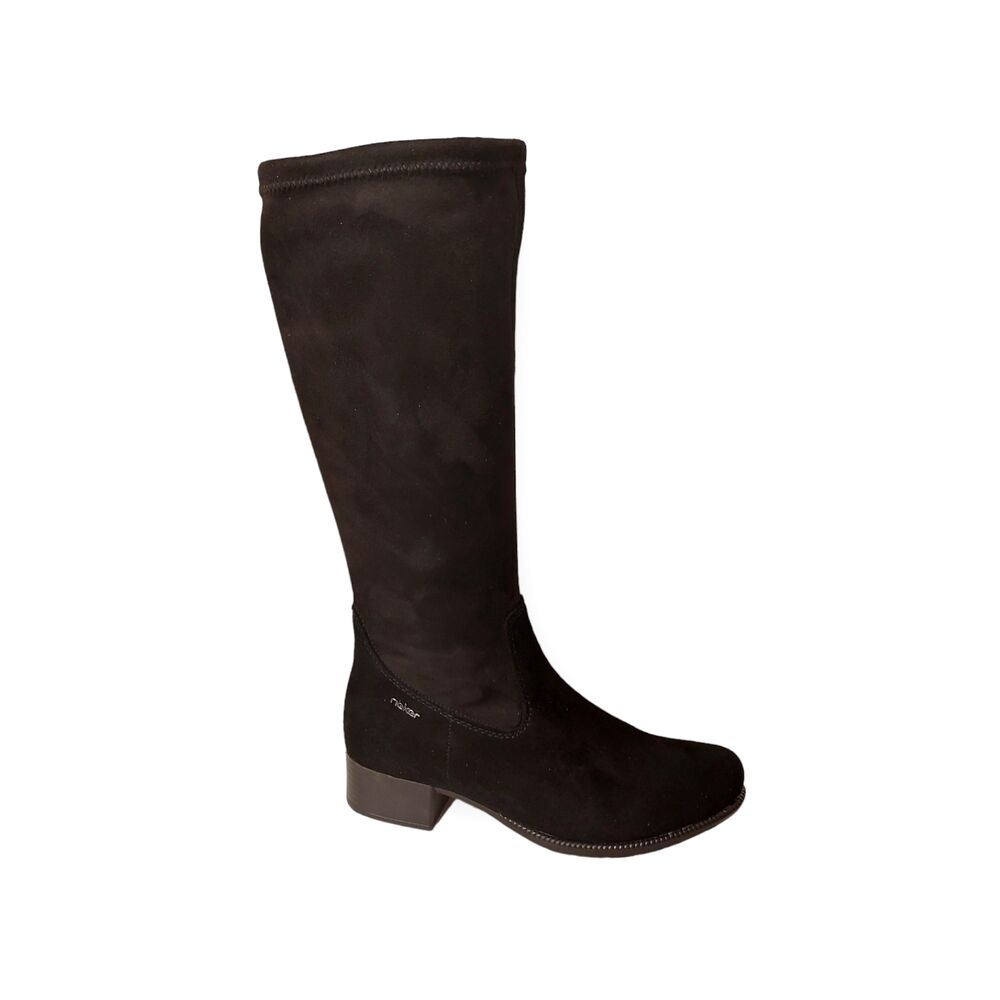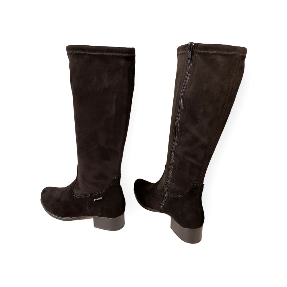 De Rieker Lange Laars 78654-00 Zwart helpt jou op stijlvolle wijze de koude maanden door! De schacht van deze laars is gemaakt van imitatie leer in een suède look, het overige is gemaakt van suède leer. Met een heerlijk warme voering! De zool is wat dikker met een stoere uitstraling. Loopcomfort gegarandeerd!