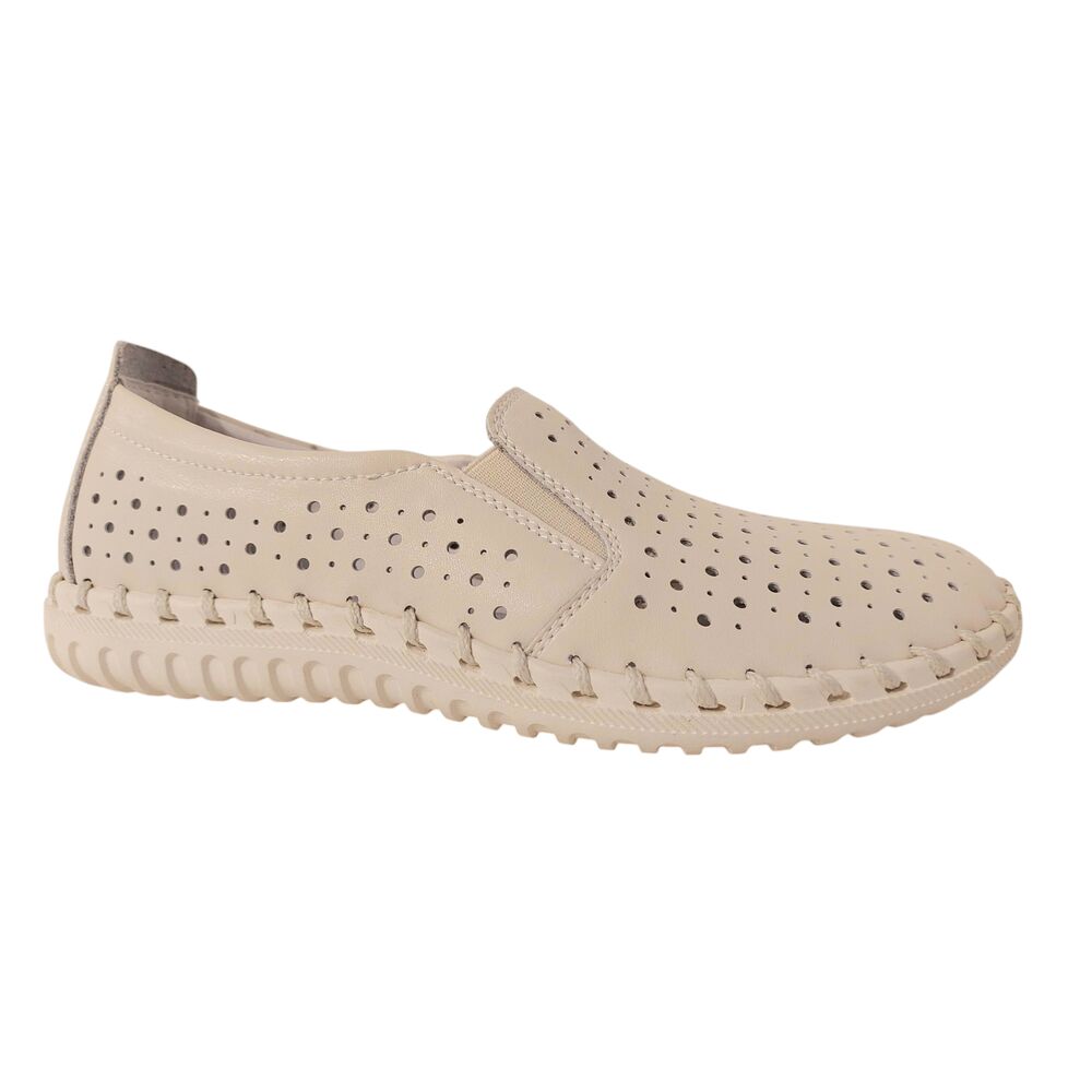 De Adventure Shoes Instapper Denver Zandis een fijne zomerse instapper voor dames. Het geperforeerde bovenwerk is gemaakt van glad zandkleurig leer. De binnenkant is ook geheel van leer. Bovendien heeft de schoen een uitneembaar voetbed, zodat er eventueel eigen steunzolen in kunnen worden gelegd. Ook heeft de slijtvaste zool een goede grip en demping voor heerlijk loopcomfort. Kortom, een comfortabele instapper voor veel gelegenheden.