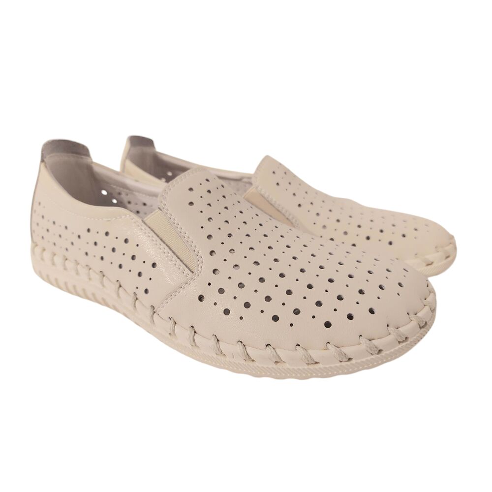 De Adventure Shoes Instapper Denver Zandis een fijne zomerse instapper voor dames. Het geperforeerde bovenwerk is gemaakt van glad zandkleurig leer. De binnenkant is ook geheel van leer. Bovendien heeft de schoen een uitneembaar voetbed, zodat er eventueel eigen steunzolen in kunnen worden gelegd. Ook heeft de slijtvaste zool een goede grip en demping voor heerlijk loopcomfort. Kortom, een comfortabele instapper voor veel gelegenheden.