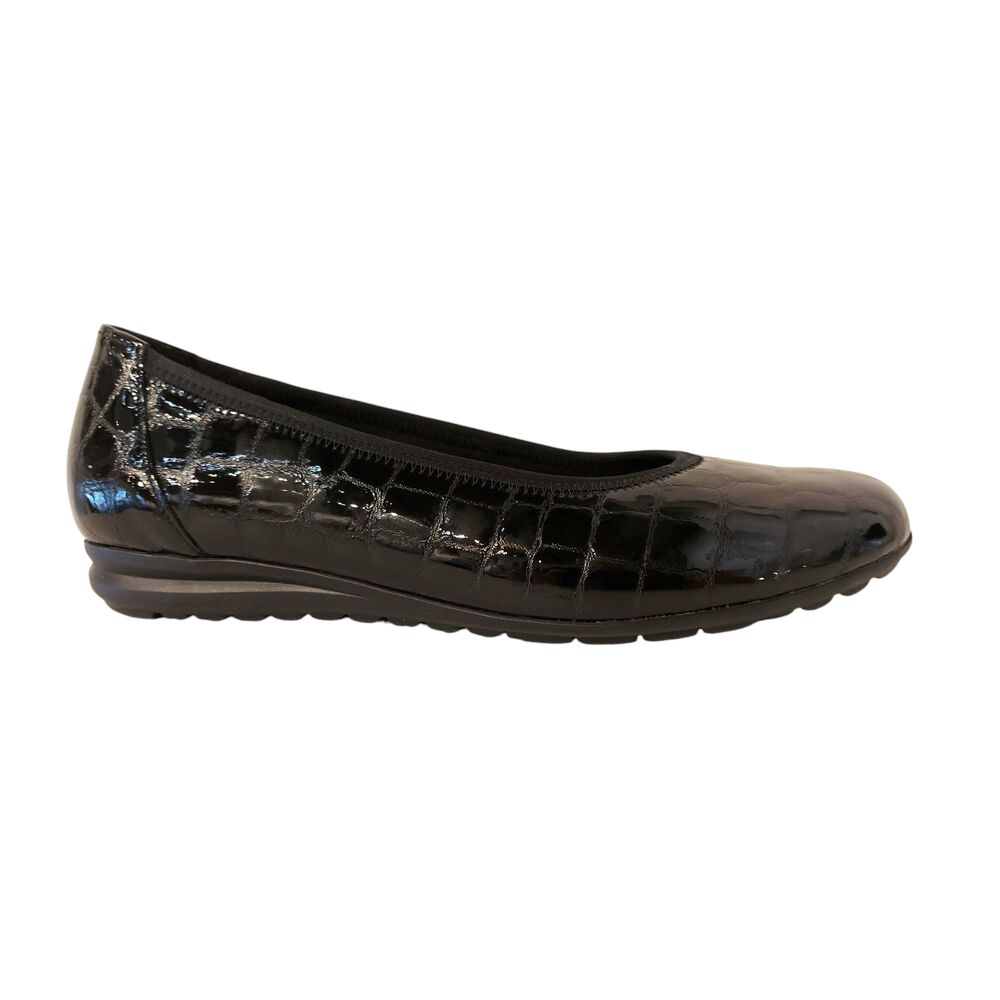 De Gabor Instappers 72.620.87 Zwart Lak is een comfortabele instapper met een goede pasvorm. Het bovenwerk is mooi zwart lak leer. De instapper is leer en textiel gevoerd, en heeft een heerlijk zacht voetbed. De instapper heeft een lichtgewicht zool zodat het loopcomfort geoptimaliseerd wordt.