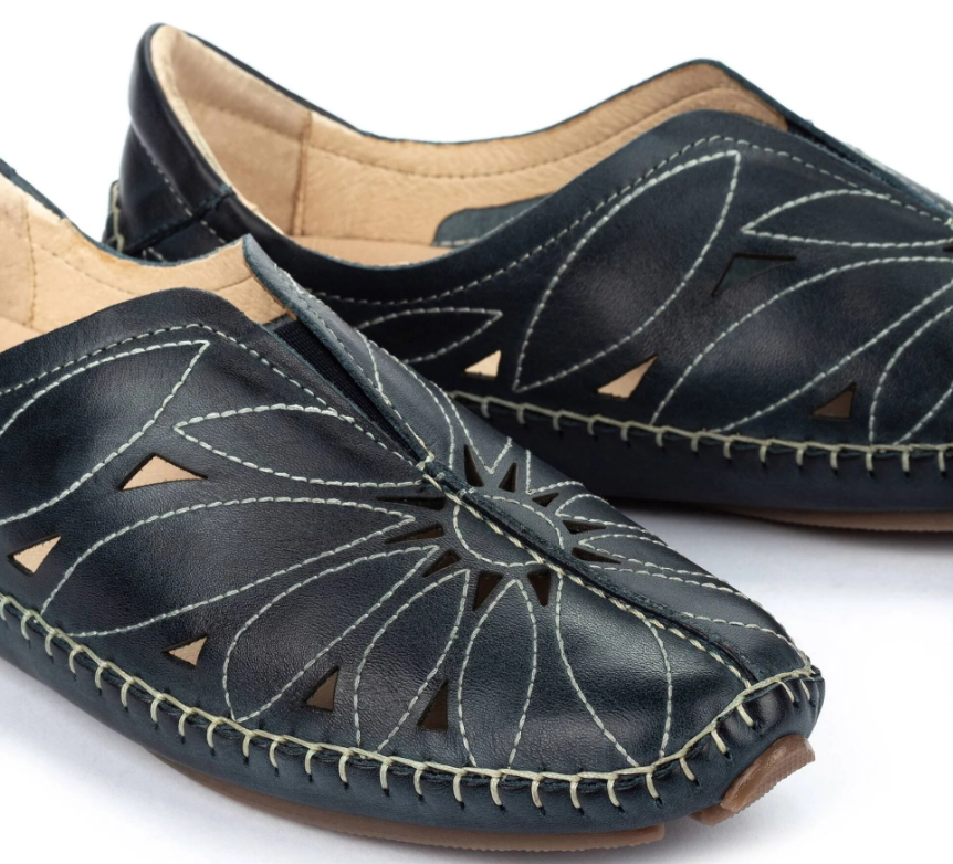 De Pikolinos Instapper Jerez 578-7399 Blauw is een zomerse instapper voor dames. Het merk Pikolinos staat bekend om hun soepele leer, waar deze schoen ook zeker weer een bewijs van is! Het bovenwerk is mooi soepel blauw leer en is op sommige stukken open. Het soepele leer maakt dat de schoen heerlijk aan de voet zit. De instapper is volledig leer gevoerd en het voetbed is uitneembaar zodat er eventuele steunzolen in gedragen kunnen worden. De soepele, rubberen en slijtvaste zool draagt mee aan een heerlijk loopcomfort!