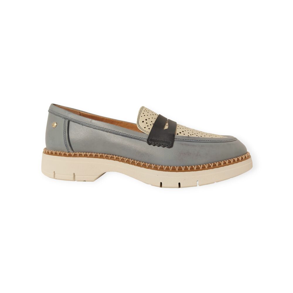 De Pikolinos Instappers Henares W1A-3864C1 Denim Blauw is een mooie elegante instapper voor allerlei gelegenheden. Pikolinos staat bekend om hun soepele leer en daar is ook deze schoen weer een bewijs van! De kleur is een ideale kleur die overal bij past en de schoen elegant maakt. De schoen is volledig leer gevoerd en heeft een goede pasvorm. Door het opengewerkte leer staat de schoen leuk aan de voet en maakt de schoen ook lekker zomers. De rubberen, lichte en slijtvaste zool zorgt voor een fijn loopcomfort.