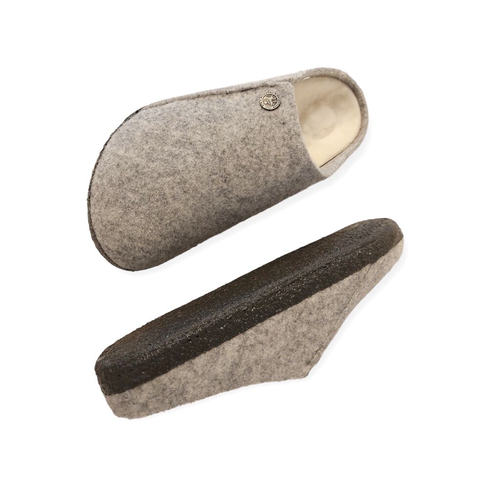 De Birkenstock Pantoffel Zermatt Rivet 1015086 Lichtgrijs Gevoerd Voetbed Smal is een dichte slipper/pantoffel met een goed leren voetbed. De upper is van lichtgrijs vilt. De specificaties zijn 70% Wol en 30% Polyester. Het goede voetbed is van kurk met lamsvacht bekleed en zijn uitneembaar, zodat er eigen zolen in gedragen kunnen worden. De zool heeft een latex laagje. De pantoffel heeft een smalle tot normale breedte. Heerlijk voor in huis!