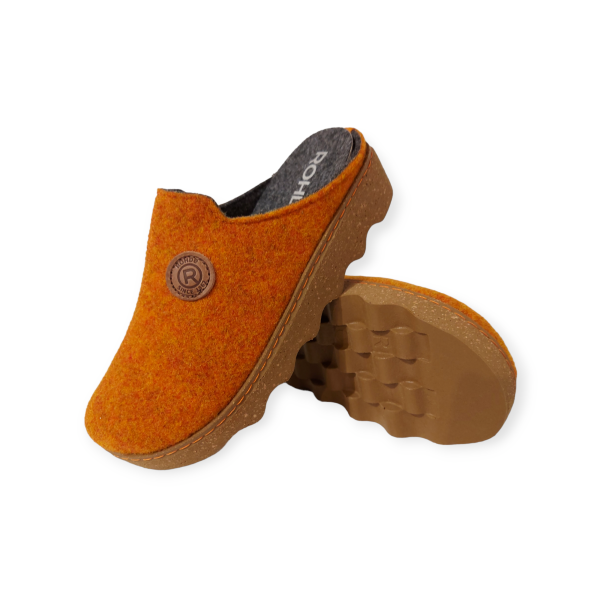 De Rohde Pantoffel 6120 Fox Oranje is een heerlijke pantoffel voor dames. Het bovenwerk en binnenwerk zijn beide gemaakt van vilt. Verder is de zool van rubber. Ook heeft de pantoffel een verwisselbaar voetbed, zodat er eventueel eigen steunzolen in kunnen worden gelegd. Een duurzame pantoffel van zeer hoge kwaliteit met een uitstekend comfort!