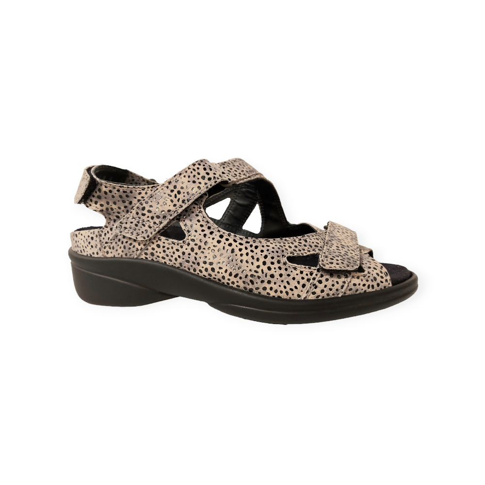 De Durea Sandaal 7258 219 0498 Wijdte K Taupe is een zeer comfortabele sandaal voor dames. Het bovenwerk is mooi taupe leer met een mooi motief. De sandaal is ook volledig leer gevoerd. Met een zeer goed voetbed die ook uitneembaar is zodat ze met een eigen steunzool gedragen kunnen worden. De sandaal is gemaakt op wijdte K, voor een brede voet. Alle banden zijn te verstellen met klittenband zodat ze goed passend gemaakt kunnen worden aan iedere voet. De lichte sleehak geeft extra comfort. Loopcomfort gegarandeerd!