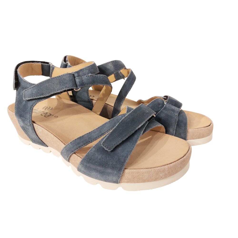 De Durea Sandaal 7421 025 1027 Wijdte H Demin Zand is een zeer comfortabele sandaal voor dames. Het bovenwerk is van mooi blauwe suède en de sleehak is bekleed met zandkleurig suède met een subtiel motiefje. De sandaal is ook volledig leer gevoerd. Met een zeer goed voetbed die ook uitneembaar is zodat ze met een eigen steunzool gedragen kunnen worden. De sandaal is gemaakt op wijdte H, voor een bredere voet. De banden over de voet zijn allemaal te verstellen zodat ze goed passend gemaakt kunnen worden aan iedere voet. De lichte sleehak geeft extra comfort en de zool is lichtgewicht. Loopcomfort gegarandeerd!