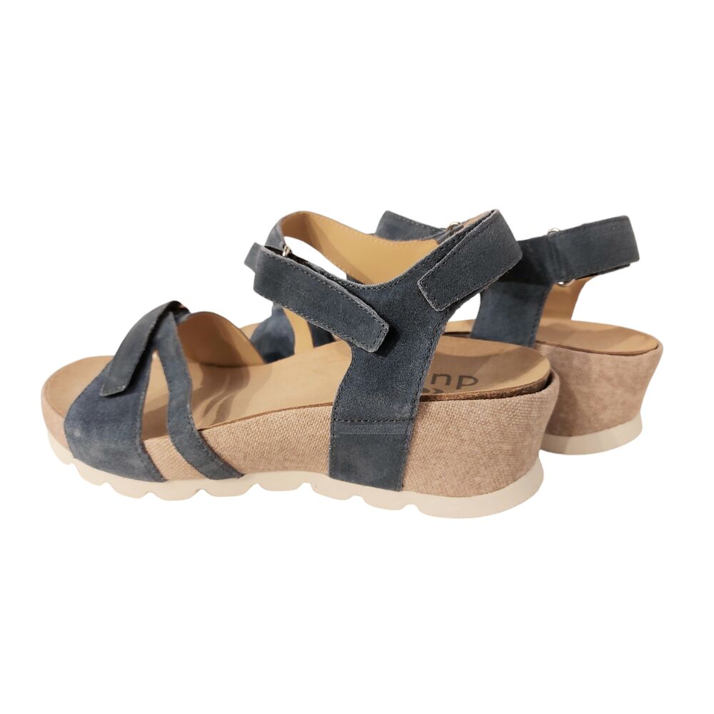 De Durea Sandaal 7421 025 1027 Wijdte H Demin Zand is een zeer comfortabele sandaal voor dames. Het bovenwerk is van mooi blauwe suède en de sleehak is bekleed met zandkleurig suède met een subtiel motiefje. De sandaal is ook volledig leer gevoerd. Met een zeer goed voetbed die ook uitneembaar is zodat ze met een eigen steunzool gedragen kunnen worden. De sandaal is gemaakt op wijdte H, voor een bredere voet. De banden over de voet zijn allemaal te verstellen zodat ze goed passend gemaakt kunnen worden aan iedere voet. De lichte sleehak geeft extra comfort en de zool is lichtgewicht. Loopcomfort gegarandeerd!