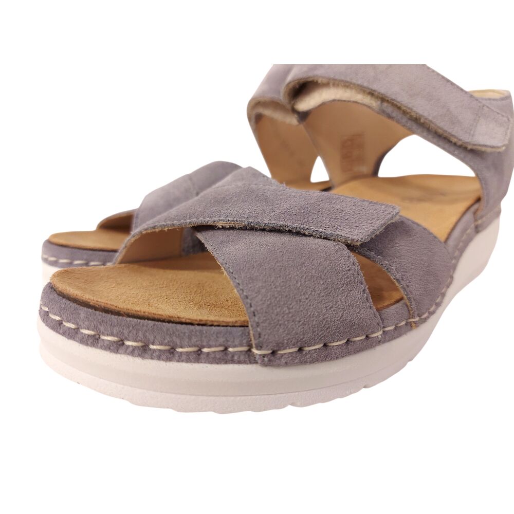 De Durea Sandaal 7432 035 2101 Demin Wijdte H is een zeer comfortabele sandaal voor dames. Het bovenwerk van de banden is gemaakt van blauw suèdeleer, met een paarse gloed. De binnenkant van de banden en het voetbed zijn beide ook geheel van leer. Het voetbed is zeer goed en uitneembaar, zodat er eventueel eigen zolen in gedragen kunnen worden. De sandaal is gemaakt op wijdte H, voor een normale tot iets bredere voet. De sandaal heeft drie banden, waarvan er twee zijn te verstellen met klittenband, zodat de sandaal goed passend gemaakt kan worden voor uw voet! De lichte sleehak geeft extra comfort. Loopcomfort gegarandeerd!