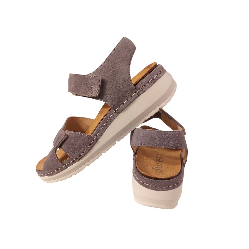 De Durea Sandaal 7432 035 2101 Demin Wijdte H is een zeer comfortabele sandaal voor dames. Het bovenwerk van de banden is gemaakt van blauw suèdeleer, met een paarse gloed. De binnenkant van de banden en het voetbed zijn beide ook geheel van leer. Het voetbed is zeer goed en uitneembaar, zodat er eventueel eigen zolen in gedragen kunnen worden. De sandaal is gemaakt op wijdte H, voor een normale tot iets bredere voet. De sandaal heeft drie banden, waarvan er twee zijn te verstellen met klittenband, zodat de sandaal goed passend gemaakt kan worden voor uw voet! De lichte sleehak geeft extra comfort. Loopcomfort gegarandeerd!