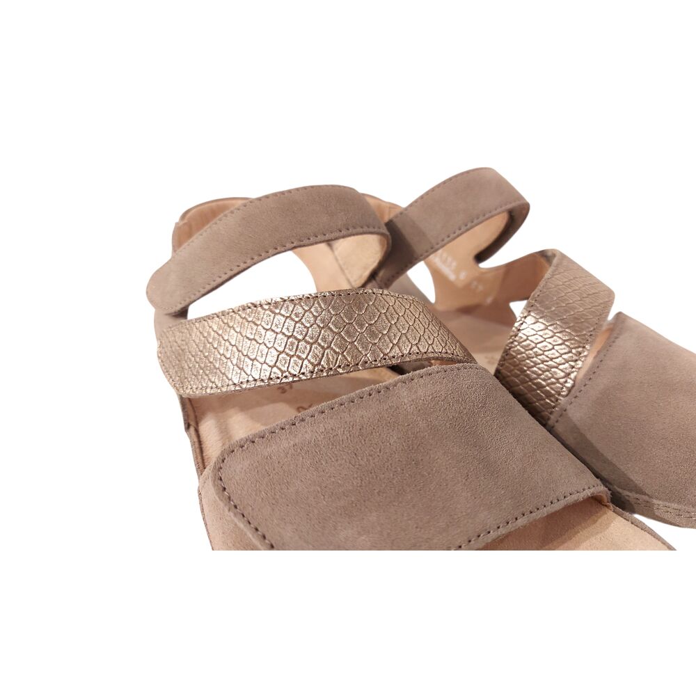 De Hartjes Sandaal 132.1135 34 26.40 Birke Goud Zand is heerlijke comfortabele sandaal. Het bovenwerk is mooi zandkleurig suède leer, gecombineerd met gouden details. De voering is ook van leer. De sandaal heeft 3 klittenbandsluitingen, voor het makkelijk afstellen naar de voet. Het originele voetbed is erg goed, comfortabel en biedt veel steun. Maar het voetbed is ook uitneembaar en kan plaats maken voor een eigen steunzool, zodat de schoen voor iedereen toegankelijk is! De zool is lichtgewicht en draagt bij aan een fijn loopcomfort!