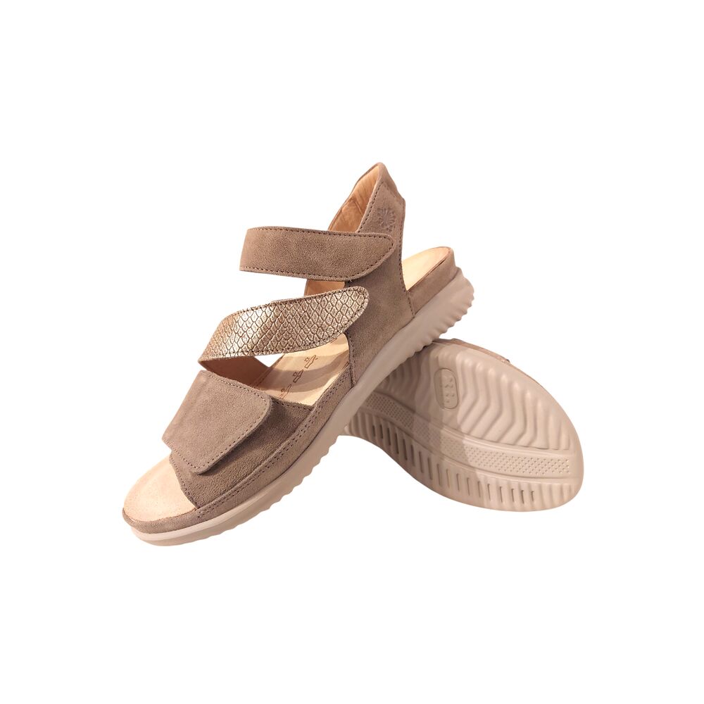 De Hartjes Sandaal 132.1135 34 26.40 Birke Goud Zand is heerlijke comfortabele sandaal. Het bovenwerk is mooi zandkleurig suède leer, gecombineerd met gouden details. De voering is ook van leer. De sandaal heeft 3 klittenbandsluitingen, voor het makkelijk afstellen naar de voet. Het originele voetbed is erg goed, comfortabel en biedt veel steun. Maar het voetbed is ook uitneembaar en kan plaats maken voor een eigen steunzool, zodat de schoen voor iedereen toegankelijk is! De zool is lichtgewicht en draagt bij aan een fijn loopcomfort!