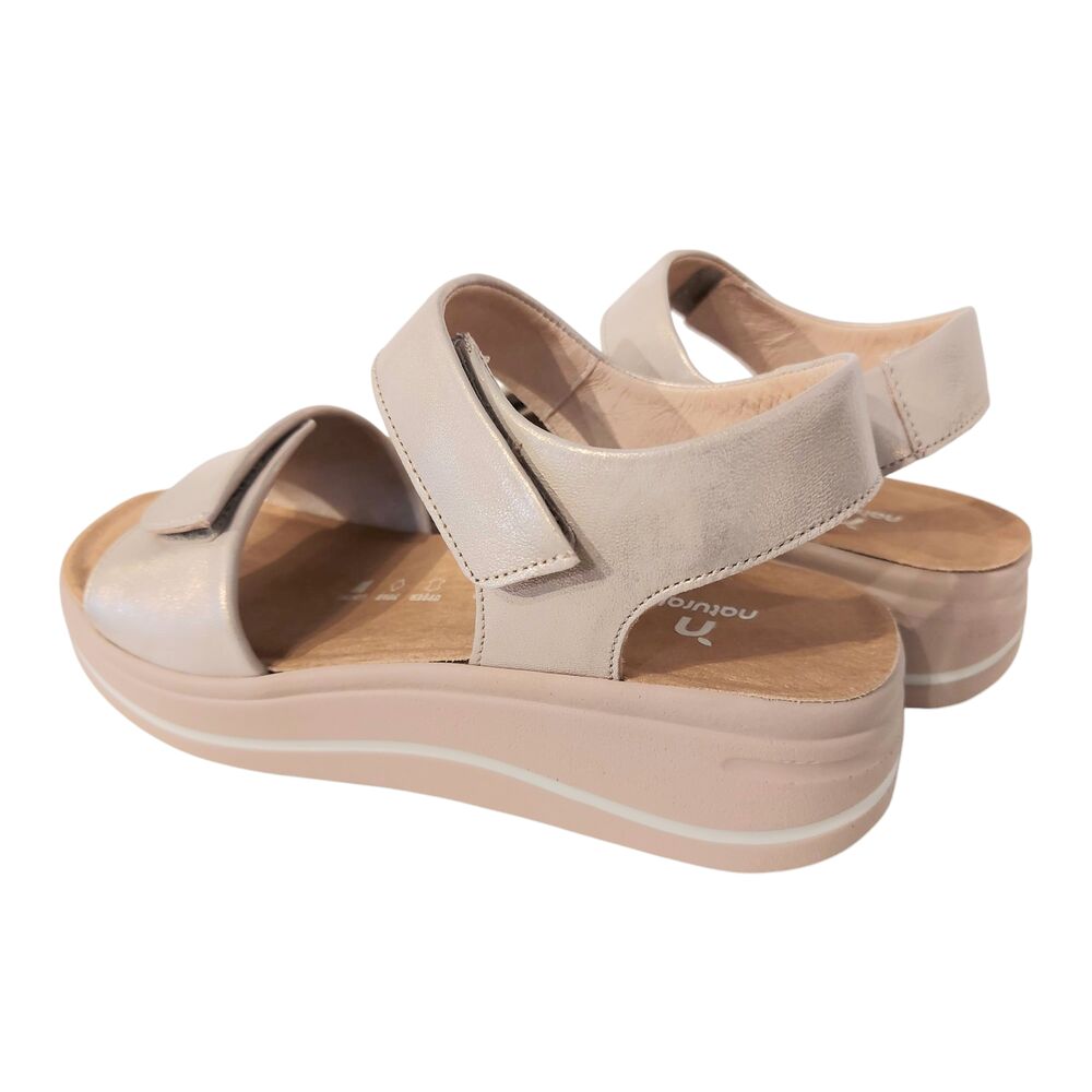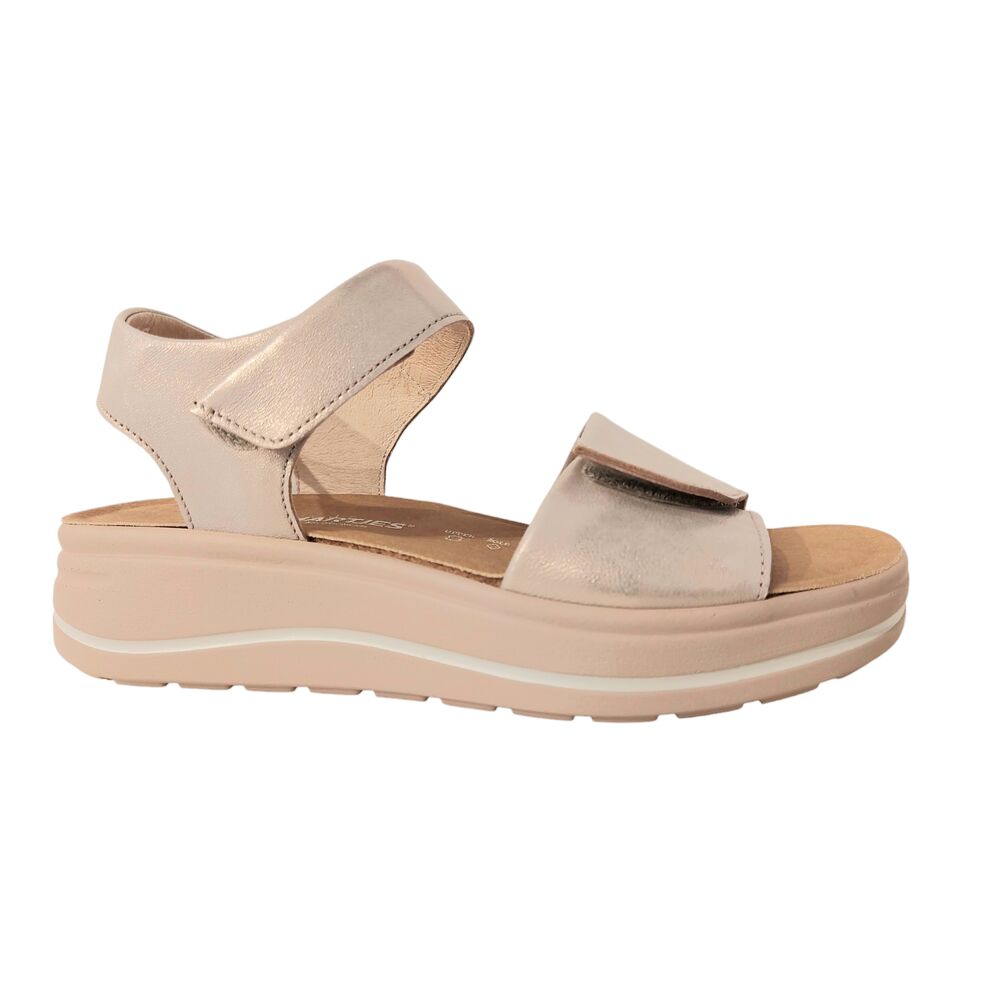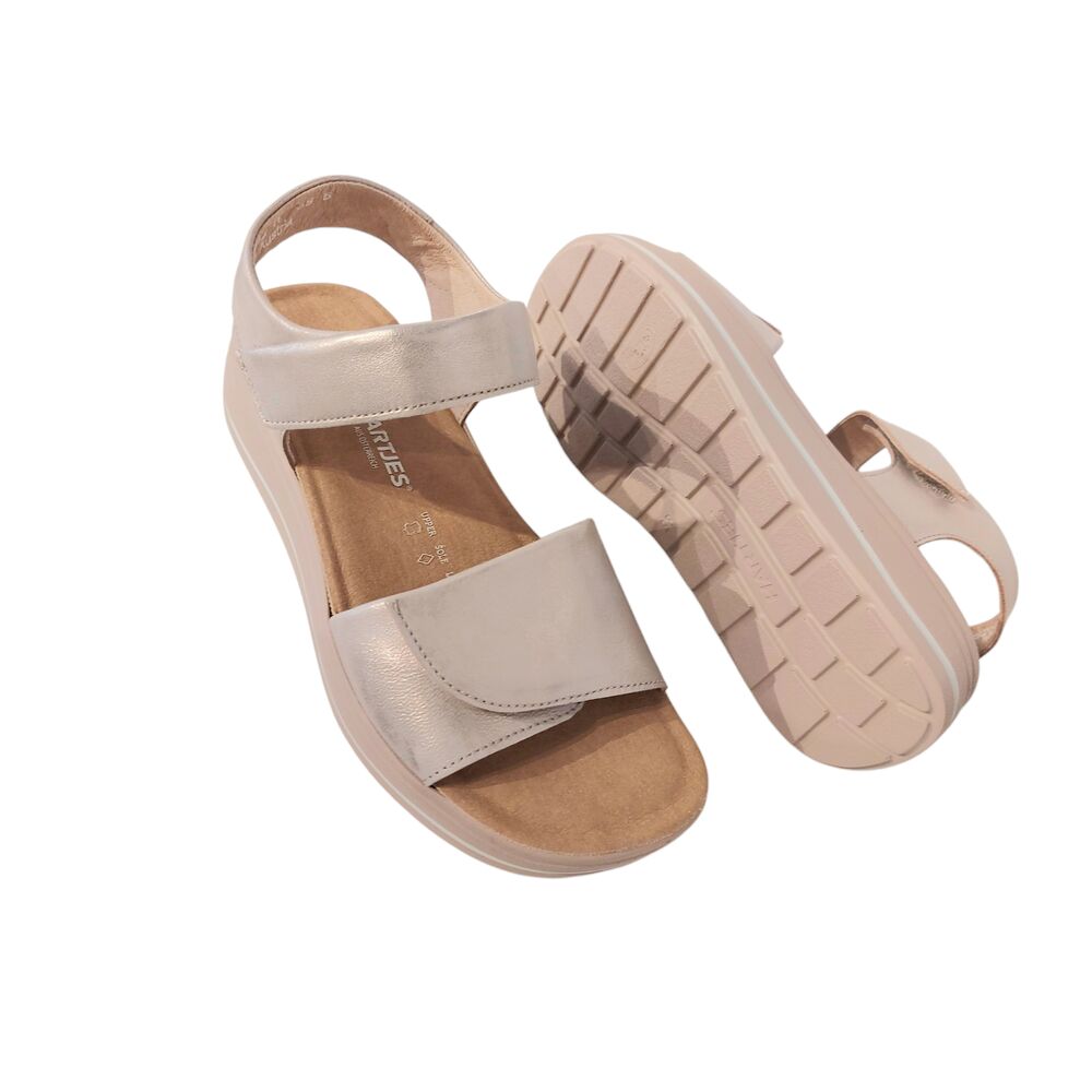De Hartjes Sandaal 132.2002/40 98.00 Roze Metallic Wijdte H is heerlijke comfortabele sandaal. Het bovenwerk is mooi metallic leer in een zand/rozige kleur. Ook de voering is van textiel. De sandaal heeft 2 klittenbandsluitingen, voor het makkelijk afstellen naar de voet. De schoen is gemaakt op wijdte H, voor een iets bredere voet. Het originele voetbed is erg goed, comfortabel en biedt veel steun. Maar het voetbed is ook uitneembaar en kan plaats maken voor een eigen steunzool, zodat de schoen voor iedereen toegankelijk is! De zool is lichtgewicht en draagt bij aan een fijn loopcomfort!