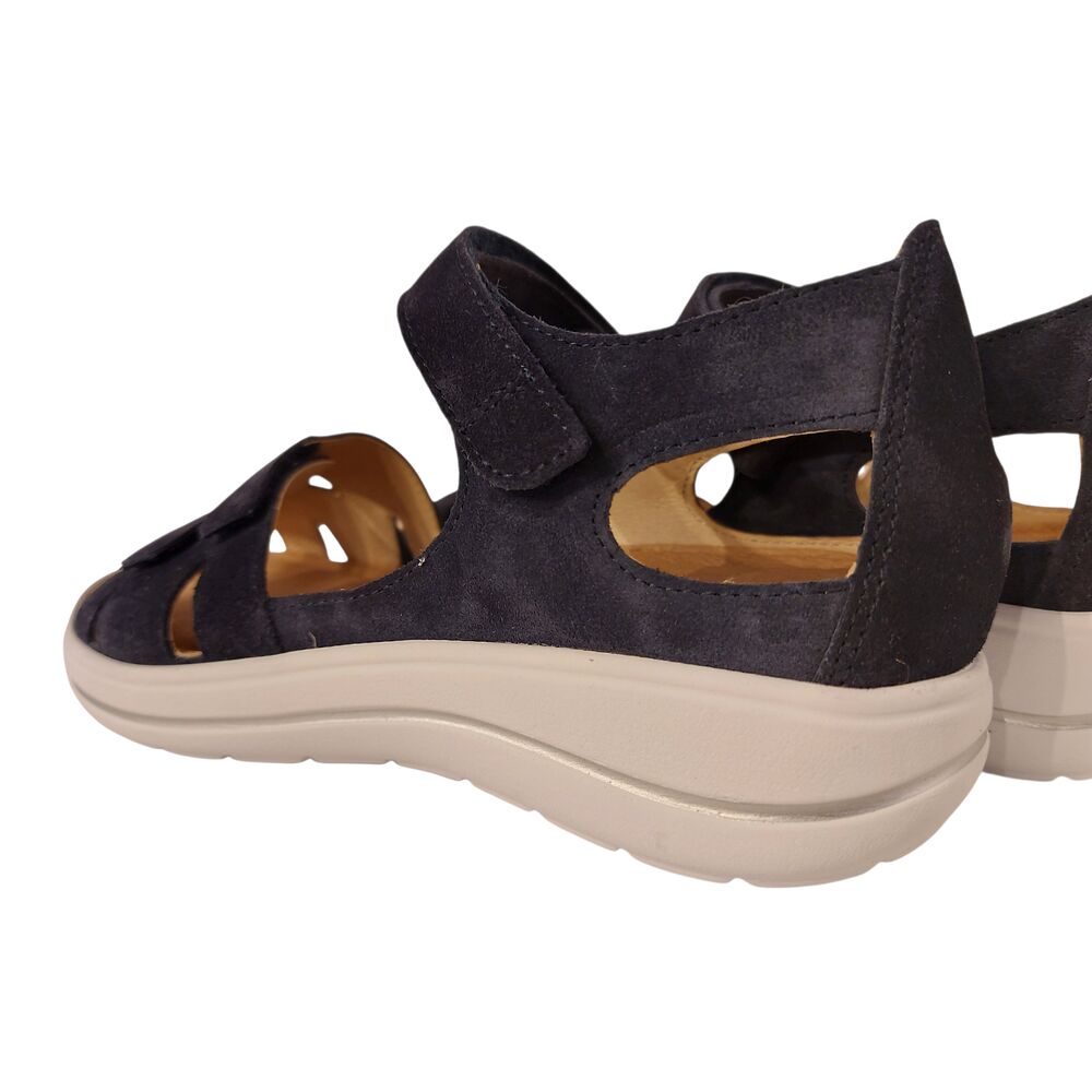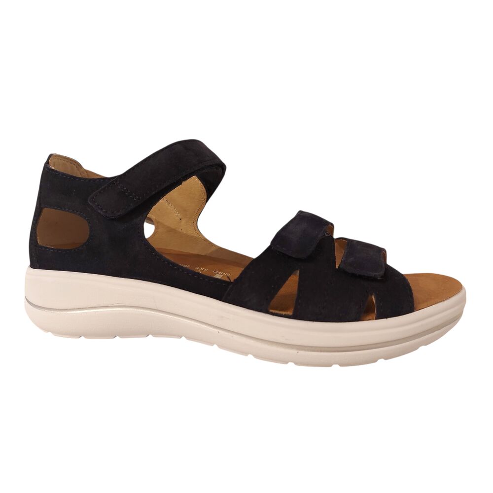 De Hartjes Sandaal 132.2104 30 47.00 Donkerblauw is heerlijke comfortabele sandaal. Het bovenwerk is mooi donkerblauw, suède leer. De voering is van leer. De sandaal heeft drie klittenbandsluitingen, voor het makkelijk afstellen naar de voet. Het originele voetbed is erg goed, comfortabel en biedt veel steun. Maar het voetbed is ook uitneembaar en kan plaats maken voor een eigen steunzool, zodat de schoen voor iedereen toegankelijk is! De zool is lichtgewicht en draagt bij aan een fijn loopcomfort!