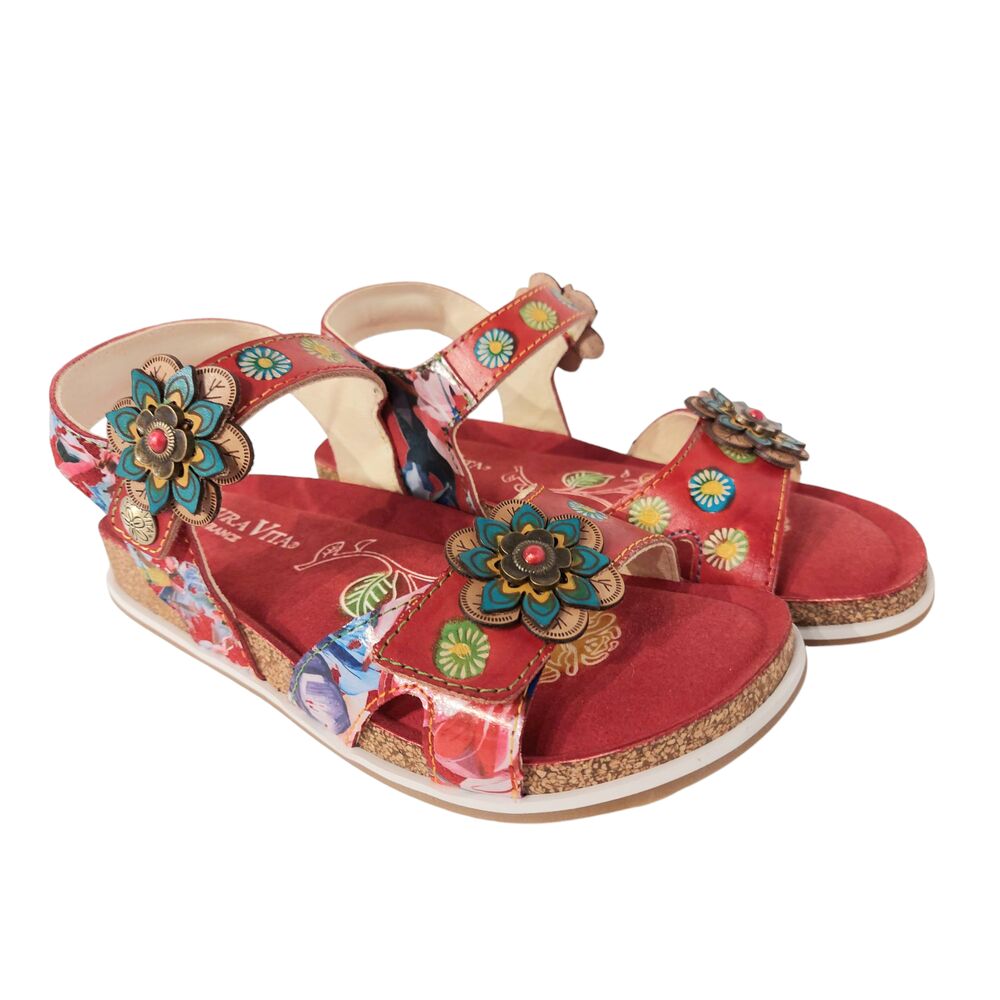 De Laura Vita Sandaal Brcyano 12 AS318-12 Rouge Rood Multi is een prachtige sandaal! Het bovenwerk is een prachtige combinatie van kleur waar rood de boventoon voert. De sandaal is geheel van leer en een heerlijk zacht voetbed. Er zit een leuke, kleine sleehak onder. Een echte eyecatcher!!