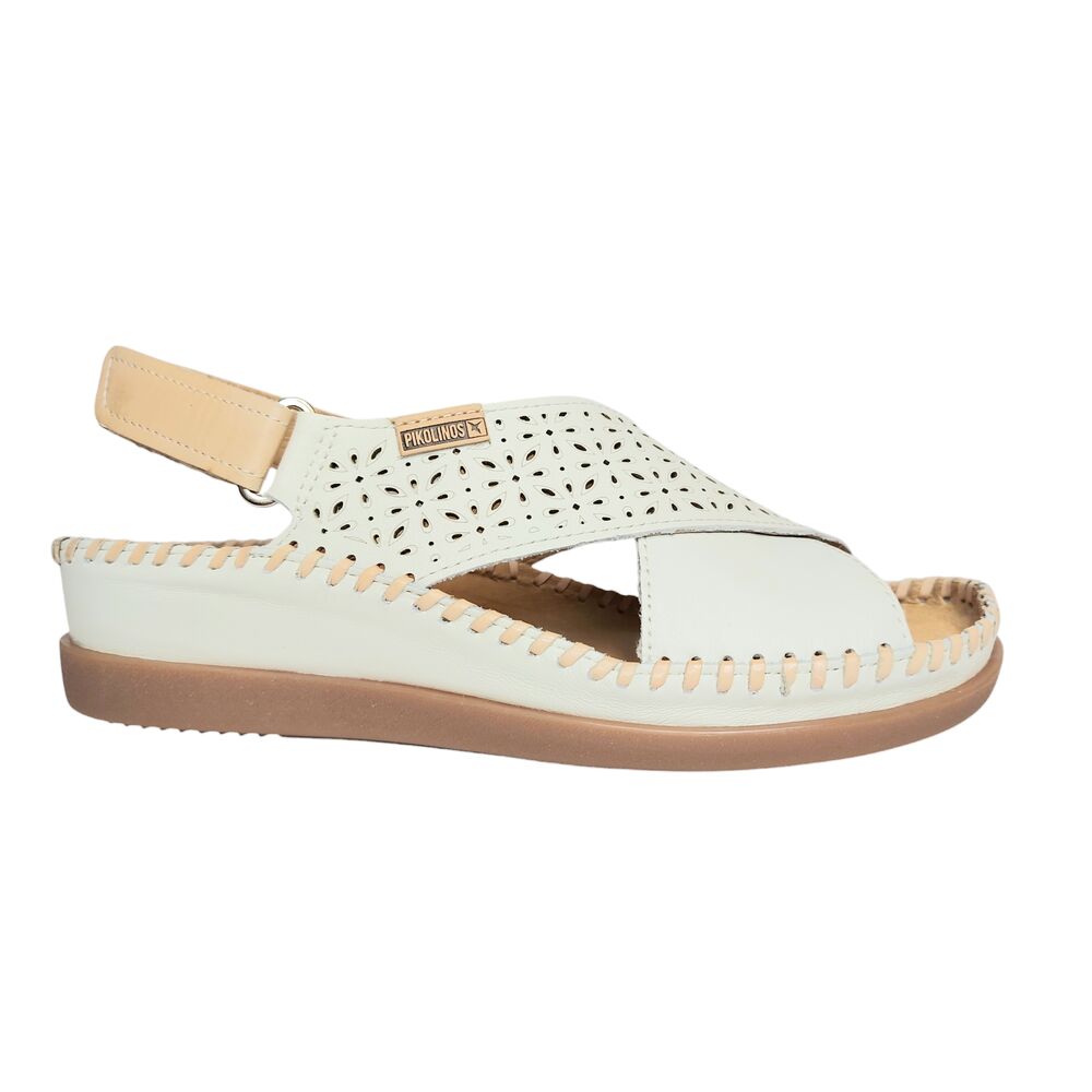 De Pikolinos Sandaal Cadaques W8K-0848C1 Nata Wit Bruin is een heerlijke sandaal voor dames. Met een mooie kleurcombinatie van nata wit, gecombineerd met lichtbruine details. Met een geperforeerd bovenwerk met een prachtig bloemen motief. Het merk Pikolinos staat bekend om hun soepele leer, waar deze schoen ook zeker weer een bewijs van is! De banden zijn gemaakt van soepel leer, wat maakt dat de schoen heerlijk aan de voet zit. Het bandje over de hiel is verstelbaar door middel van klittenband. Verder is de sandaal volledig leer gevoerd. De soepele, rubberen en slijtvaste zool draagt mee aan een heerlijk loopcomfort!
