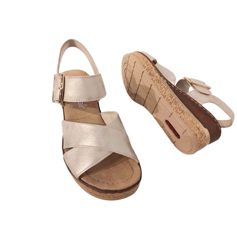 Deze Rieker Sandaal 63795-60 Beige Goud is een ideale sandaal waar je zo inschiet. Het voetbed voelt heerlijk zacht aan de voet. De buitenkant is imitatieleer en de binnenkant is van imitatieleer en textiel. Het bandje over de wreef is verstelbaar door middel van klittenband. Met een ideale pasvorm, doordat de sandaal verstelbaar is door middel van een klittenband over de wreef. De soepele en lichtgewicht zool draagt bij aan een fijn loopcomfort!