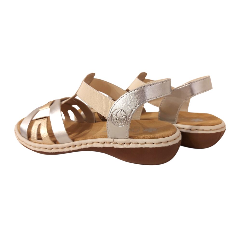 Deze Rieker Sandaal 65918-91 Metallic is een ideale sandaal waar je zo inschiet. Het voetbed voelt heerlijk zacht aan de voet. Zowel de binnen- als de buitenkant bestaat uit een combinatie van leer en textiel, afgewerkt met zilveren en gouden bandjes. De sandaal heeft een ideale pasvorm, doordat het bovenwerk op de voet aansluit met elastiek. De soepele en lichtgewicht zool draagt bij aan een fijn loopcomfort!