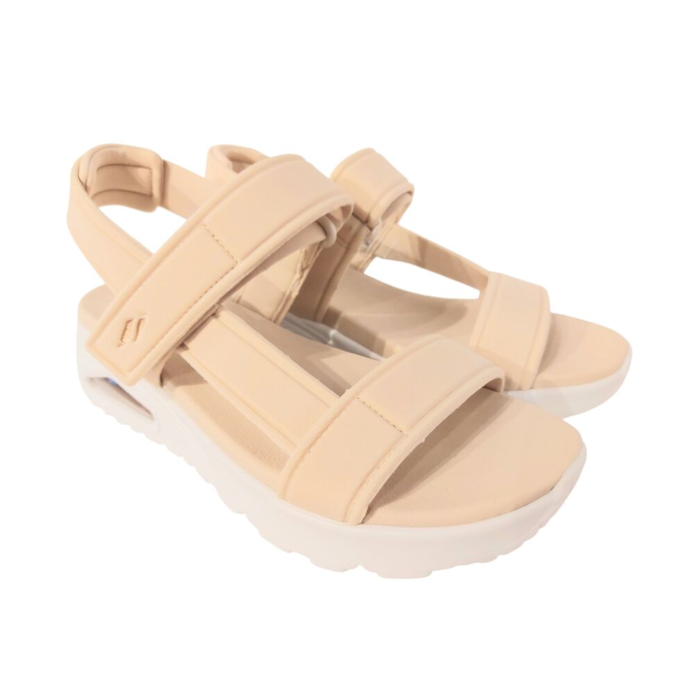 De Skechers Sandaal Summer Stand2 119813/Nat Beige is een heerlijk comfortabele sandaal voor dames. Het bovenwerk van de schoen bestaat uit beige textiel. De binnenkant van de sandaal bestaat ook geheel uit textiel. De bovenste band over de voet is verstelbaar, zodat de sandaal een goede pasvorm heeft. Tot slot heeft de schoen een flexibele gripzool voor het beste loopcomfort en goede grip. Kortom, de ultieme oplossing voor een dag vol comfort!