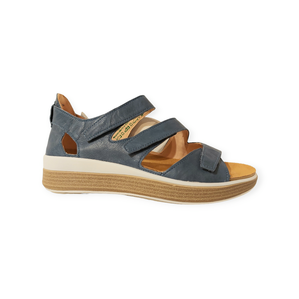 De Think! Sandaal Meggie 3-000795-8000 Denim Blauw is een mooie sandaal met een uitstekende pasvorm. Het bovenwerk is gemaakt van prachtig denim, blauw, glad leer. Het leer is natuurlijk gelooid. De sandaal is ook volledig leer gevoerd en verstelbaar met 3 klittenbanden. De sandaal heeft een goed voetbed, die ook verwisselbaar is, zodat ze uitermate geschikt zijn om te dragen met een eigen steunzool. Met een lichtgewicht en slijtvaste loopzool die het loopcomfort optimaliseert.