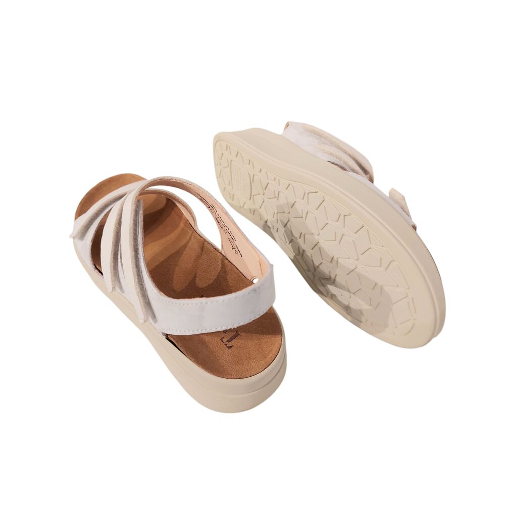 De Think! Sandaal Meggie 3000585-1010 Wit Combi is een mooie sandaal met een uitstekende pasvorm. Het bovenwerk is gemaakt van prachtig Off-white glad leer, met aan de zijkant gewerkt leer van de kleur grijs. Het leer is natuurlijk gelooid. De sandaal is ook volledig leer gevoerd en verstelbaar met 3 klittenbanden. De sandaal heeft een goed voetbed, die ook verwisselbaar is, zodat ze uitermate geschikt zijn om te dragen met een eigen steunzool. Met een lichtgewicht en slijtvaste loopzool die het loopcomfort optimaliseert.