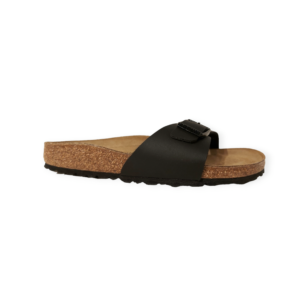 De Birkenstock Madrid 0040793 Slipper Zwart is een leuke slipper voor dames met een goed voetbed. Het bovenwerk is van het materiaal Birko-Flor in zwart. De band over de voorvoet is verstelbaar met een gesp. Het kurken voetbed is leer bekleed. De zool is van het materiaal EVA*.