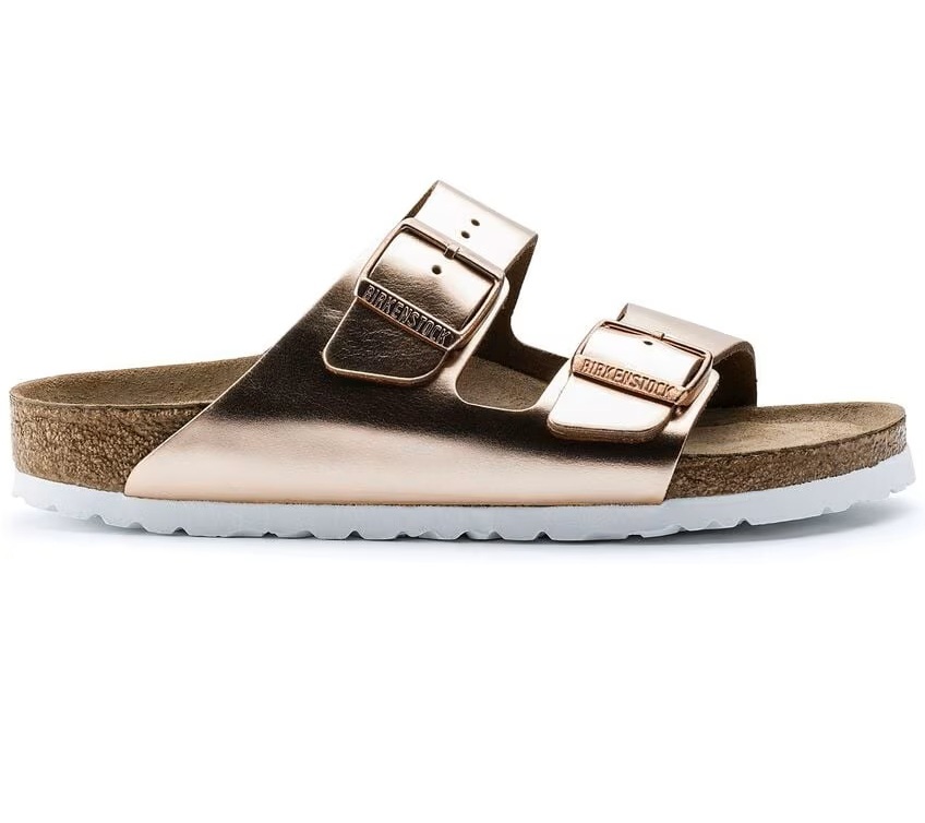 De Birkenstock Slipper Arizona 0952093 Metallic Copper Smal is een slipper voor dames met een goed leren voetbed. De slipper heeft twee verstelbare banden voor een optimale pasvorm, in de kleur metallic koper. Verder is zowel het bovenwerk als de voering gemaakt van leer. De zool is gemaakt van het materiaal EVA*. En hij heeft een normale, tot smallere wijdte.