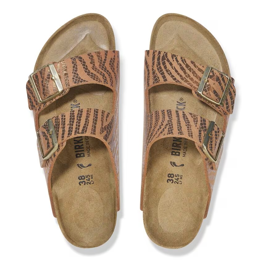 Birkenstock Slipper Arizona 1029509 SYN Zebra Pecan Bruin Smal, is een slipper voor dames met een goed leren voetbed. De slipper heeft twee verstelbare banden voor een optimale pasvorm. Het bovenwerk gemaakt van nubuck/textiel leer. Verder is de zool gemaakt van het materiaal EVA*. De slipper heeft een smalle, tot normale wijdte.