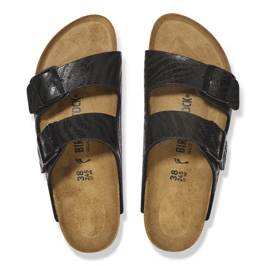 De Birkenstock Slipper Arizona 1029560 Zebra Zwart Smal, is een slipper voor dames met een goed leren voetbed. De slipper heeft twee verstelbare banden voor een optimale pasvorm. Het bovenwerk gemaakt van nubuck/textiel leer. Verder is de zool gemaakt van het materiaal EVA*. De slipper heeft een smalle, tot normale wijdte.
