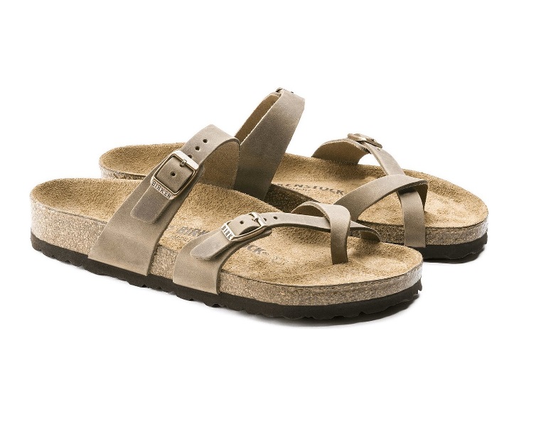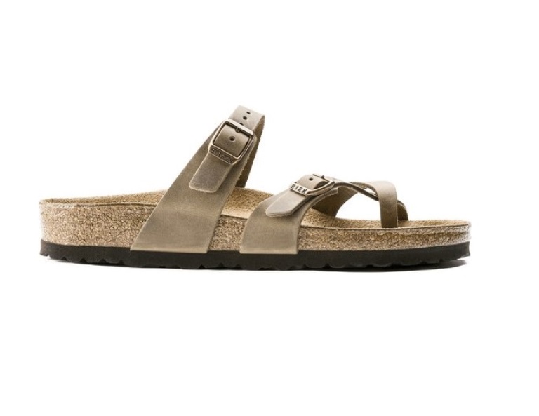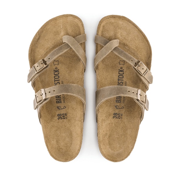 De Birkenstock Slipper Mayari 1011433 Tabacco Brown Breed Gevet Leer is een mooie, bruine teenslipper voor dames met een goed voetbed. Het bovenwerk is gemaakt van gevet leer. Een kruislingse band over de voorvoet waarvan er 1 verstelbaar is door middel van een gesp. Ook de band over de wreef is verstelbaar met een gesp. Het kurken voetbed is leer bekleed. De zool bestaat uit het materiaal EVA*.