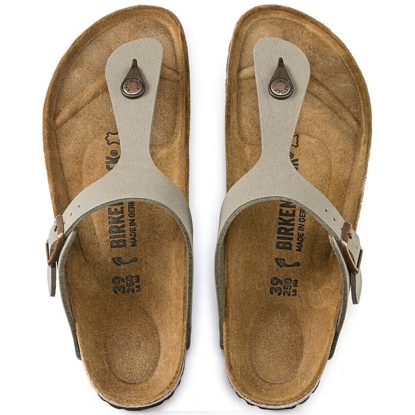 De Birkenstock Teenslipper Gizeh 043391 Stone Normaal is een leuke teenslipper met een goed voetbed. Het bovenwerk is van het materiaal Birko-Flor in de kleur stone. De band over de wreef is verstelbaar met een gesp. Het kurken voetbed is leer bekleed. De zool is van het materiaal EVA*.