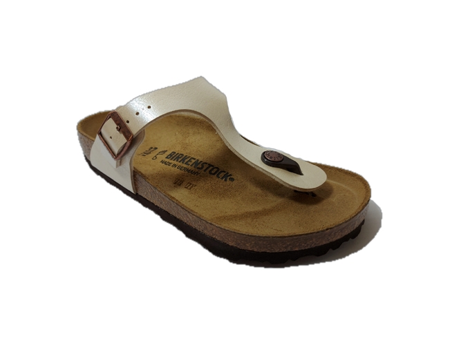 De Birkenstock Teenslipper Gizeh 943871 Graceful Pearl White Normaal is een slipper voor dames met een goed leren voetbed. De slipper heeft een verstelbare band voor een optimale pasvorm. Verder is zowel het bovenwerk als de voering gemaakt van Birko-Flor. Het bovenwerk heeft een mooie parelmoeren glans. De zool is gemaakt van het materiaal EVA*. De slipper heeft een normale, tot bredere wijdte.