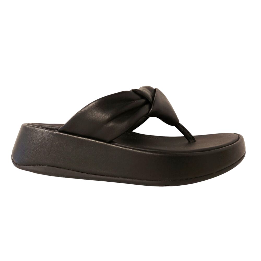 Fitflop Slipper F-Mode Knot Soft-Leather Flatform Toe-Post Zwart