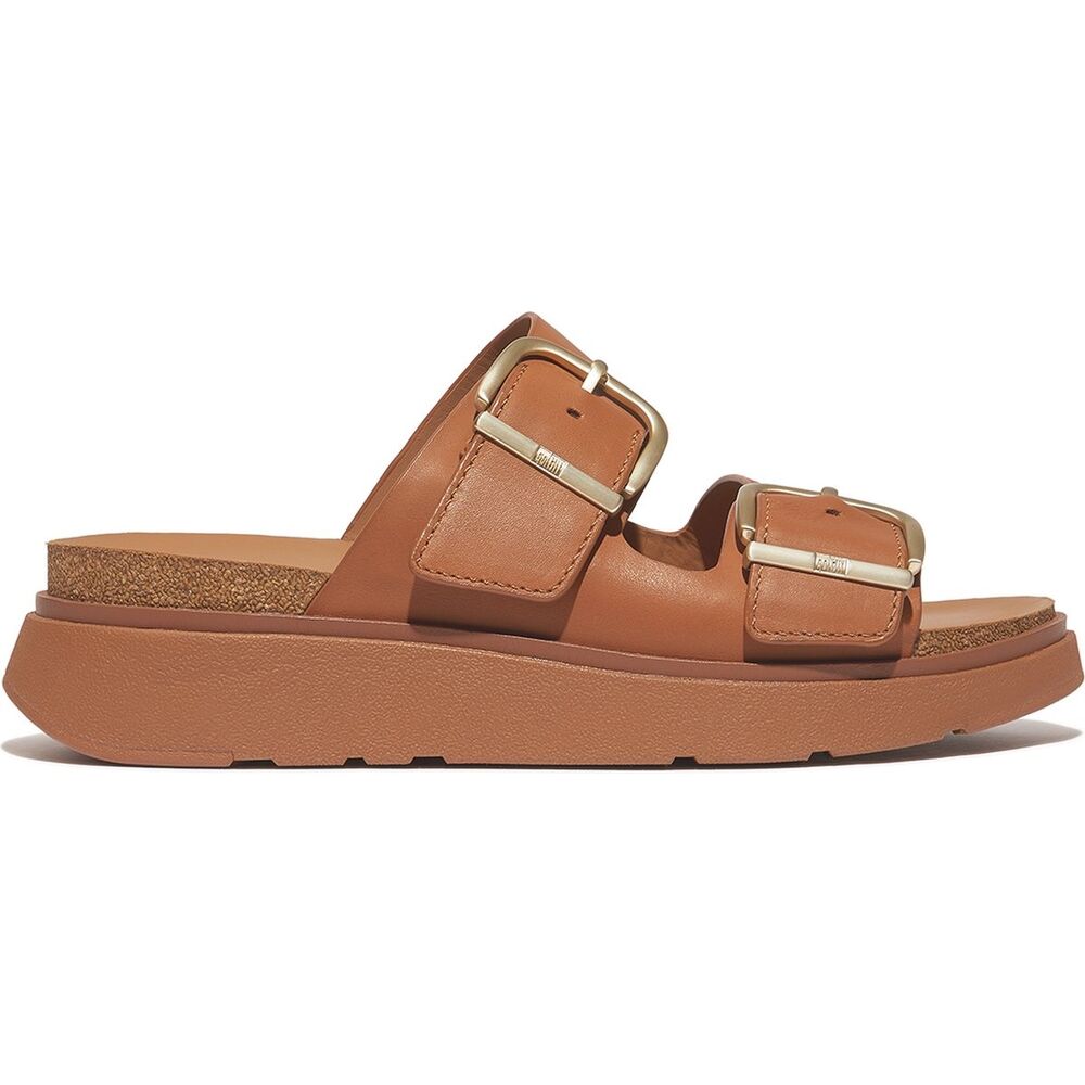 De Fitflop Slipper Gen-FF Buckle Two-Bar Leather Slides Light Tan is een trendy slipper voor dames. Het bovenwerk is van mooi lichtbruin gladleer. De binnenkant van de banden en het voetbed bestaan beide uit leer. De twee banden zorgen voor een optimale pasvorm, doordat deze verstelt kunnen worden. De slipper heeft een goede, comfortabele zool. Bij de hiel zit een stevige zool voor een goede demping, in het midden voelt het heerlijk zacht voor een optimaal comfort en als laatste heeft het een medium zachtheid bij de tenen voor een goede grip. De slipper heeft een plateau van 4 cm. Met een slijtvaste antislip zool. Kortom, dé slipper voor onder al je kledingstijlen deze zomer!