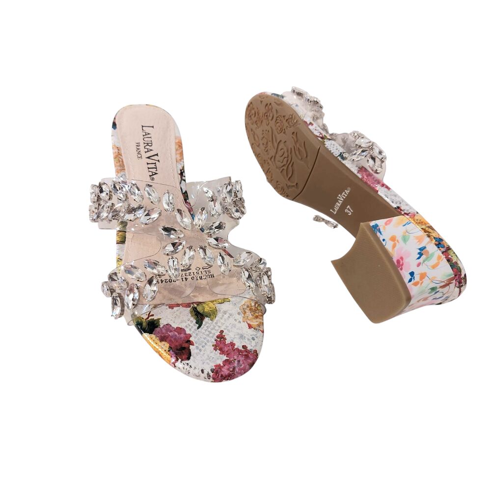 De Laura Vita Slipper Hucbio 41 SL151237-41 Blanc is een prachtige slipper! Het bovenwerk is gemaakt van doorzichtig kunststofmateriaal. Daarnaast is het heerlijk zachte voetbed volledig van leer. Verder heeft de slipper een hak van 5,5 cm. De geweldige diamanten maken ook deze slipper weer een echte eyecatcher!.