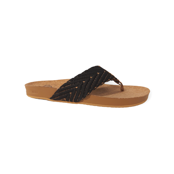 De Reef Teenslipper Cushion Strand Black/Natural is een fijne teenslipper in de de kleur zwart. Reef maakt al 30 jaar stijlvolle en robuuste slippers voor op het land, het water, en alles daar tussenin. Het van oorsprong Argentijnse merk heeft een liefde voor de surf- en strandwereld en deelt dit graag met jou. De slippers en sandalen van Reef zorgen dat je onbezorgd alles wat je maar wil kan doen op het strand, en daar buiten. Bij ons vind je Reef slippers voor dames en heren, van hoogwaardig leer of juist een lichte synthetische stof, geschikt voor elke activiteit!